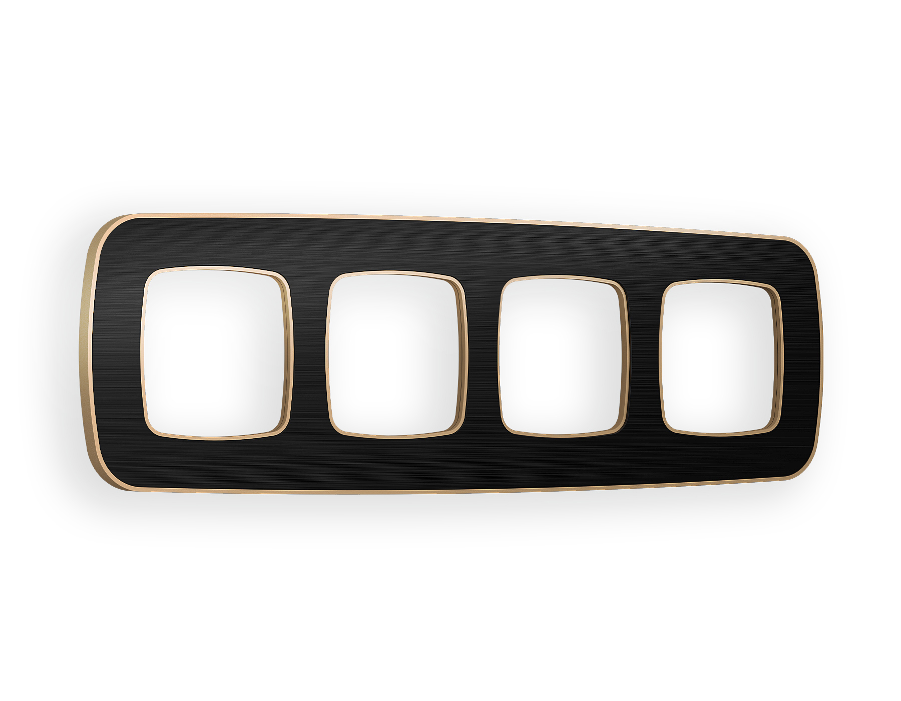 Рамка OMEGA Coint (Черный Стекло органическое/Шампань) 4-ая OF640544. Многогранный ассортимент Ambrella Volt включает в себя механизмы, лицевые панели и рамки, а также комплекты, доступные в различных цветовых решениях. Продукция представлена в модульном исполнении, что позволяет гибко настраивать внешнийвид и функциональность. Вам будет легко заменить лицевую панель, рамку или механизм, найдя идеальное сочетание цветов.
