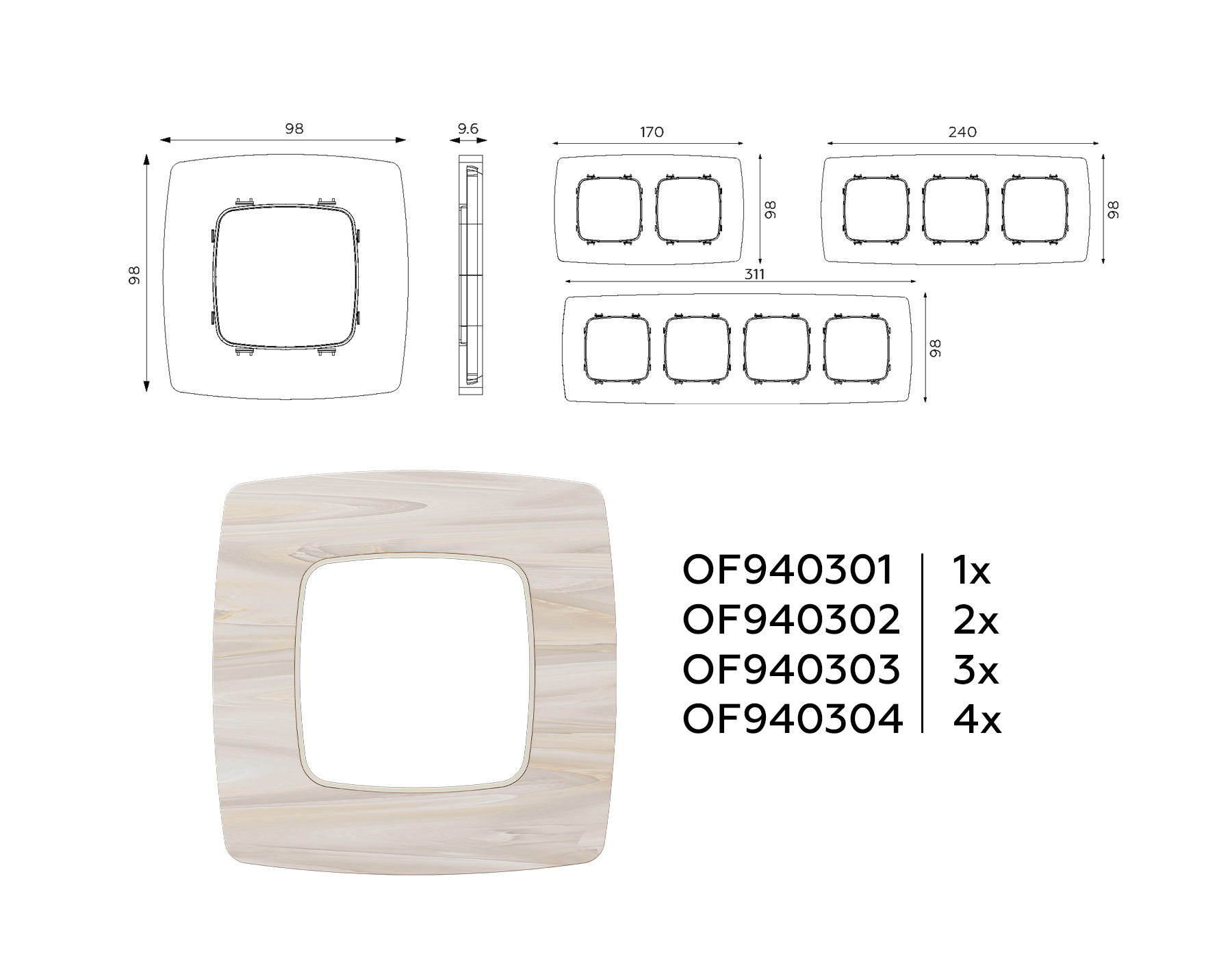 Рамка OMEGA Opera (Бежевый мрамор) 2-ая OF940302. Многогранный ассортимент Ambrella Volt включает в себя механизмы, лицевые панели и рамки, а также комплекты, доступные в различных цветовых решениях. Продукция представлена в модульном исполнении, что позволяет гибко настраивать внешнийвид и функциональность. Вам будет легко заменить лицевую панель, рамку или механизм, найдя идеальное сочетание цветов.
