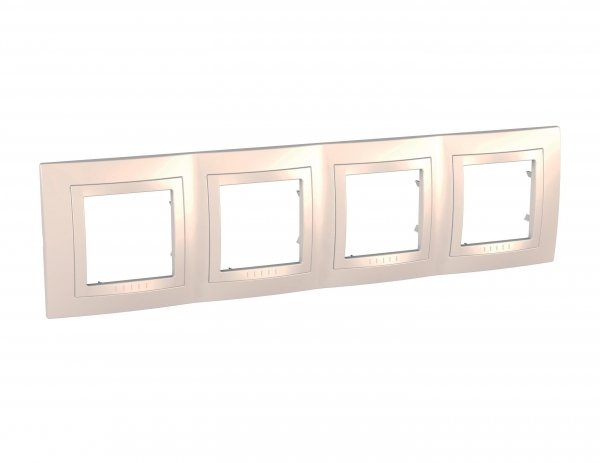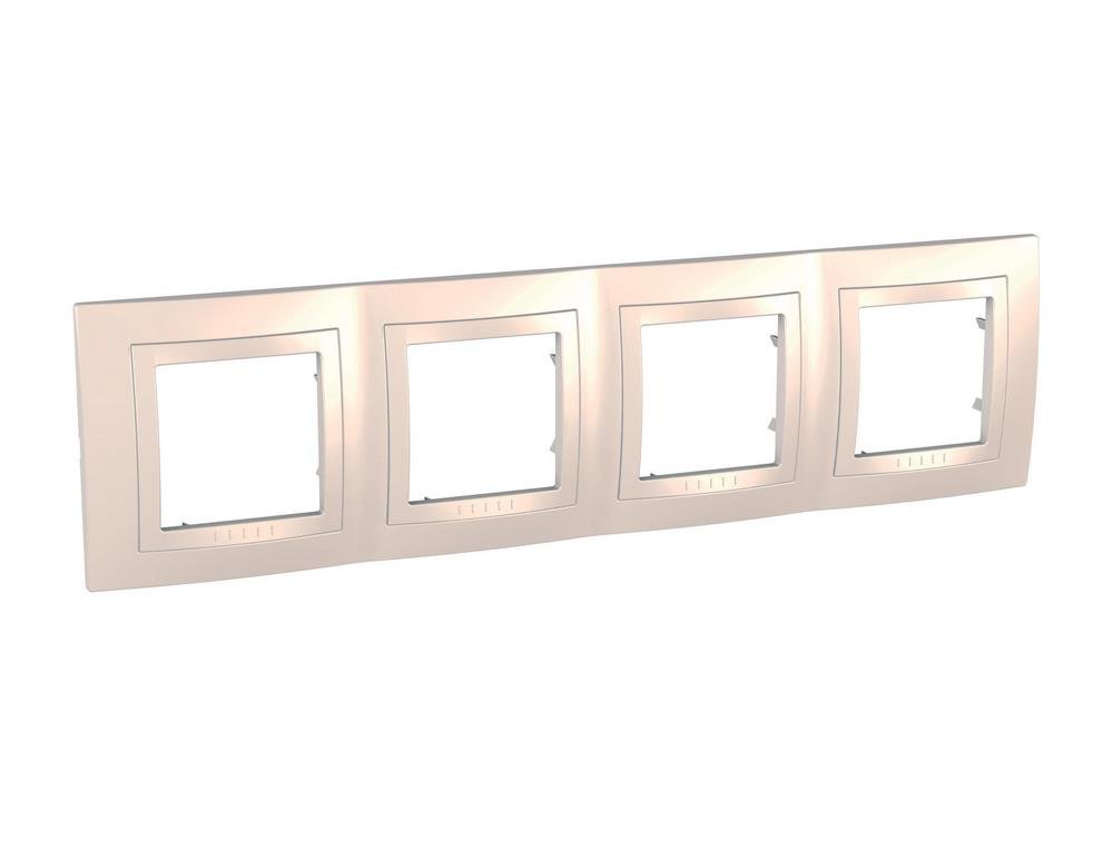 Рамка Schneider Electric UNICA (бежевый) четырёхместная с полем для декоративного элемента, устанавливается в вертикальном и горизонтальном положениях.