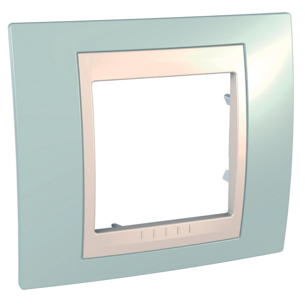 Рамка Schneider Electric UNICA ХАМЕЛЕОН (морская волна) одинарная с бежевой декоративной вставкой.