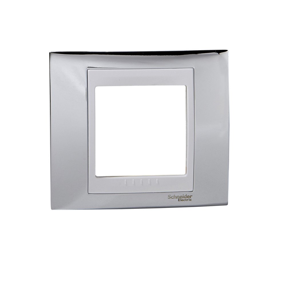 Рамка Schneider Electric UNICA ХАМЕЛЕОН (серебро) одинарная с белой декоративной вставкой.