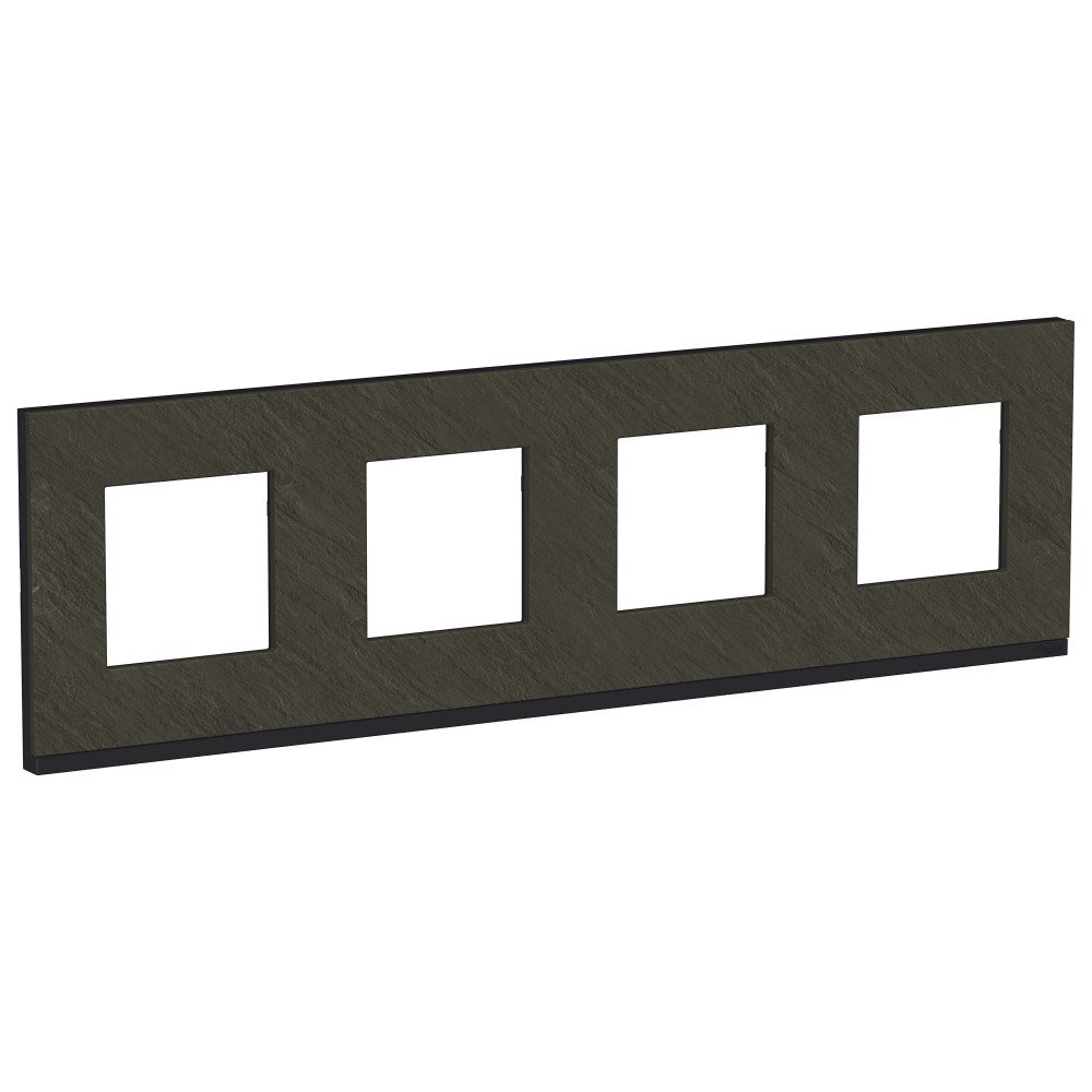 Рамка Schneider Electric UNICA PURE (камень) четырёхместная с задней панелью цвета антрацит.