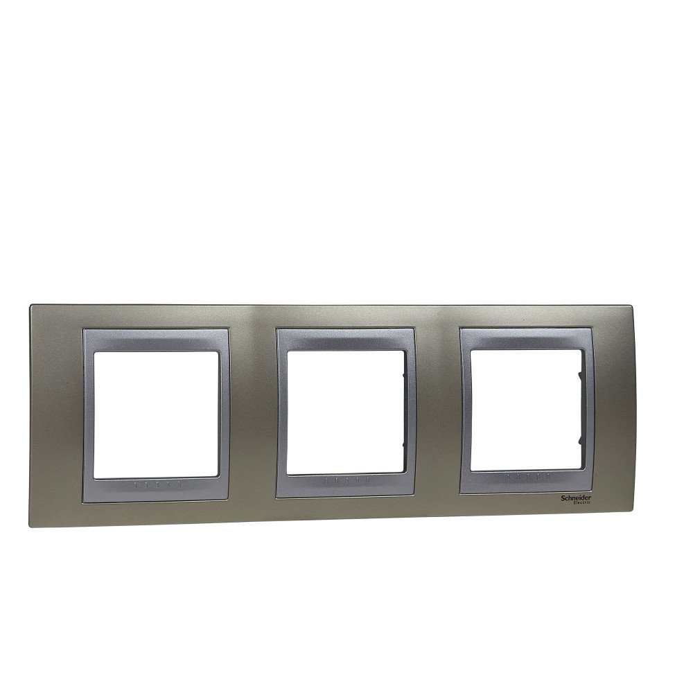 Рамка Schneider Electric UNICA TOP (опал) трёхместная с алюминиевой декоративной вставкой.