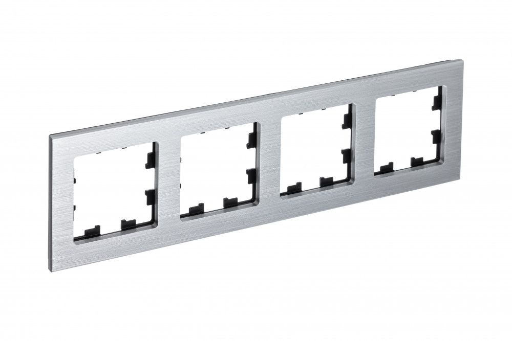 Рамка Systeme Electric (ранее Schneider Electric) серии AtlasDesign Nature (цвет металл серебро) 4-постовая.