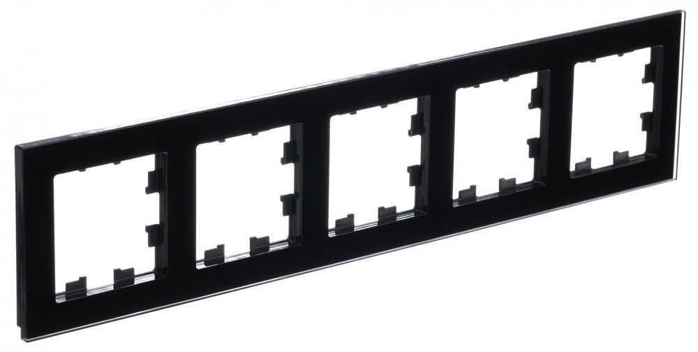 Рамка Systeme Electric (ранее Schneider Electric) серии AtlasDesign Nature (цвет стекло чёрный) 5-постовая.