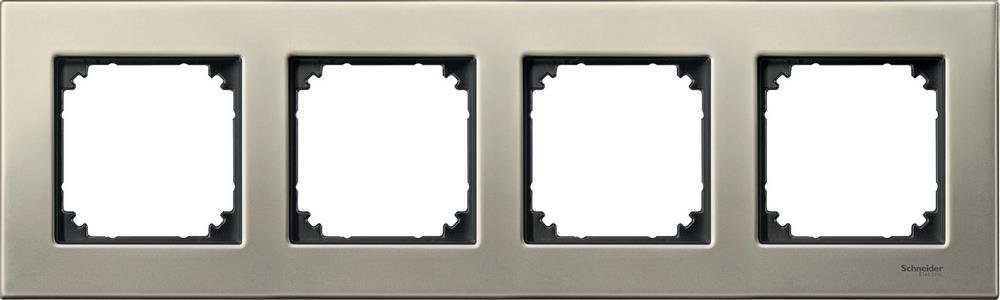 Рамка металлическая 4-местная, титан. наименование: M-Elegance, металл - тип устройства или его аксессуаров: рамка. Преимущества: Безграничные возможности Merten System M. Основой изделий являются высококачественные механизмы скрытого монтажа. Они отличаются высокой гибкостью использования и разнообразием выполняемых функций: это электрические розетки, клавишные и кнопочные выключатели, устройства управления рольставнями и регуляторы температуры, а также телефонные, ТВ/аудио и компьютерные розетки, датчики движения и присутствия, термостаты, светорегуляторы и реле времени, компоненты радиосистемы и системы автоматизации KNX. Merten System M удовлетворяет всем требованиям и успешно решает любые задачи.... применения: Изделия Merten System M подходят для жилых и нежилых помещений. Их устанавливают в школах, офисах, больницах или отелях., Инновационные функции для классических электрических установок, Выполнение функций интеллектуального интерфейса для работы с KNX, Обеспечение комфорта, безопасности и эффективн