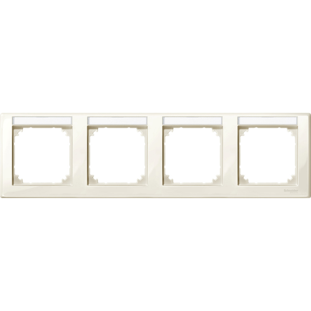 Рамка 4-местная с полем для надписи M-SMART горизонтальная, бежевый. наименование: M-Smart - тип устройства или его аксессуаров: рамка - код цвета: RAL 1013. Преимущества: Безграничные возможности Merten System M. Основой изделий являются высококачественные механизмы скрытого монтажа. Они отличаются высокой гибкостью использования и разнообразием выполняемых функций: это электрические розетки, клавишные и кнопочные выключатели, устройства управления рольставнями и регуляторы температуры, а также телефонные, ТВ/аудио и компьютерные розетки, датчики движения и присутствия, термостаты, светорегуляторы и реле времени, компоненты радиосистемы и системы автоматизации KNX. Merten System M удовлетворяет всем требованиям и успешно решает любые задачи.... применения: Изделия Merten System M подходят для жилых и нежилых помещений. Их устанавливают в школах, офисах, больницах или отелях., Инновационные функции для классических электрических установок, Выполнение функций интеллектуального интерфейса для работы с KNX, Обеспечение комфорта, безопасности и эффективности использования электроэнергии, Возможность простой и гибкой модернизации с System M и системой RF..