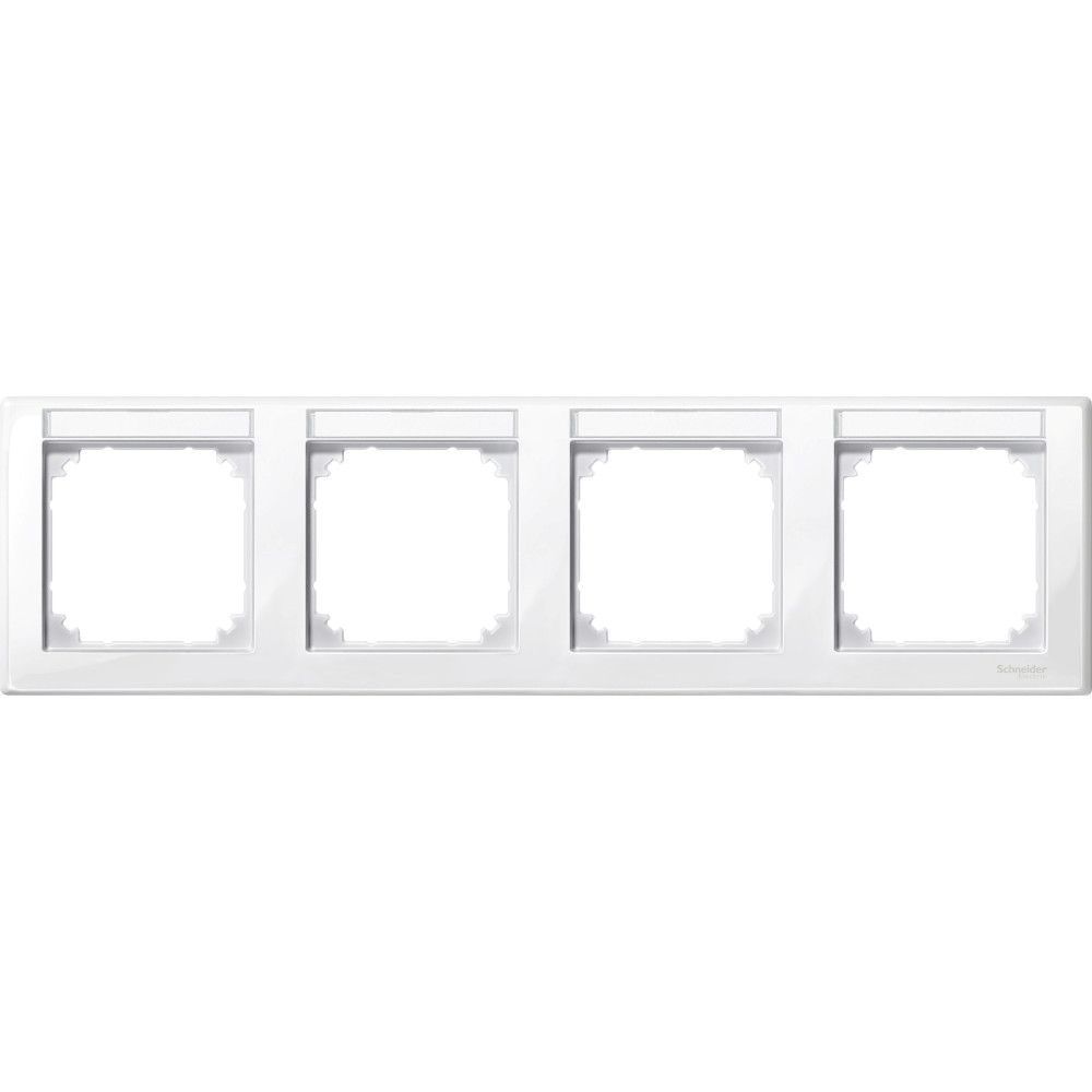 Рамка с полем для надписи 4 поста. наименование: M-Smart - тип устройства или его аксессуаров: рамка - код цвета: RAL 9010. Преимущества: Безграничные возможности Merten System M. Основой изделий являются высококачественные механизмы скрытого монтажа. Они отличаются высокой гибкостью использования и разнообразием выполняемых функций: это электрические розетки, клавишные и кнопочные выключатели, устройства управления рольставнями и регуляторы температуры, а также телефонные, ТВ/аудио и компьютерные розетки, датчики движения и присутствия, термостаты, светорегуляторы и реле времени, компоненты радиосистемы и системы автоматизации KNX. Merten System M удовлетворяет всем требованиям и успешно решает любые задачи.... применения: Изделия Merten System M подходят для жилых и нежилых помещений. Их устанавливают в школах, офисах, больницах или отелях., Инновационные функции для классических электрических установок, Выполнение функций интеллектуального интерфейса для работы с KNX, Обеспечение комфорта, безопасности и э