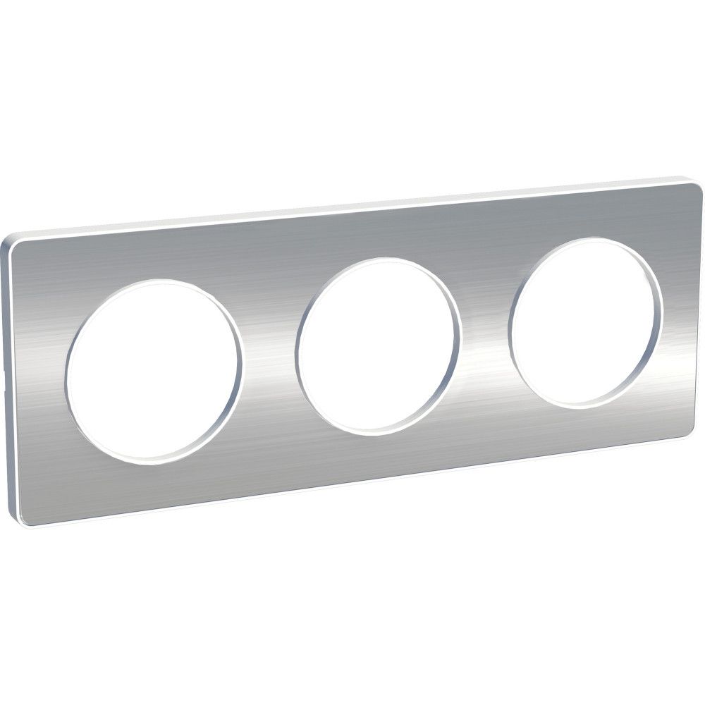 Рамка Schneider Electric ODACE (материал полированный алюминий) трёхместная для механизма цвета белый.