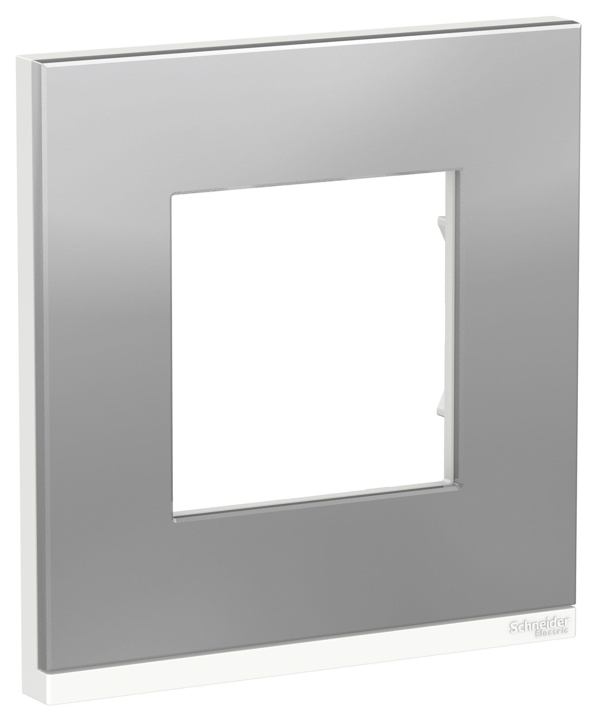 Рамка Schneider Electric UNICA PURE (алюминий матовый) одинарная с задней панелью цвета белый.