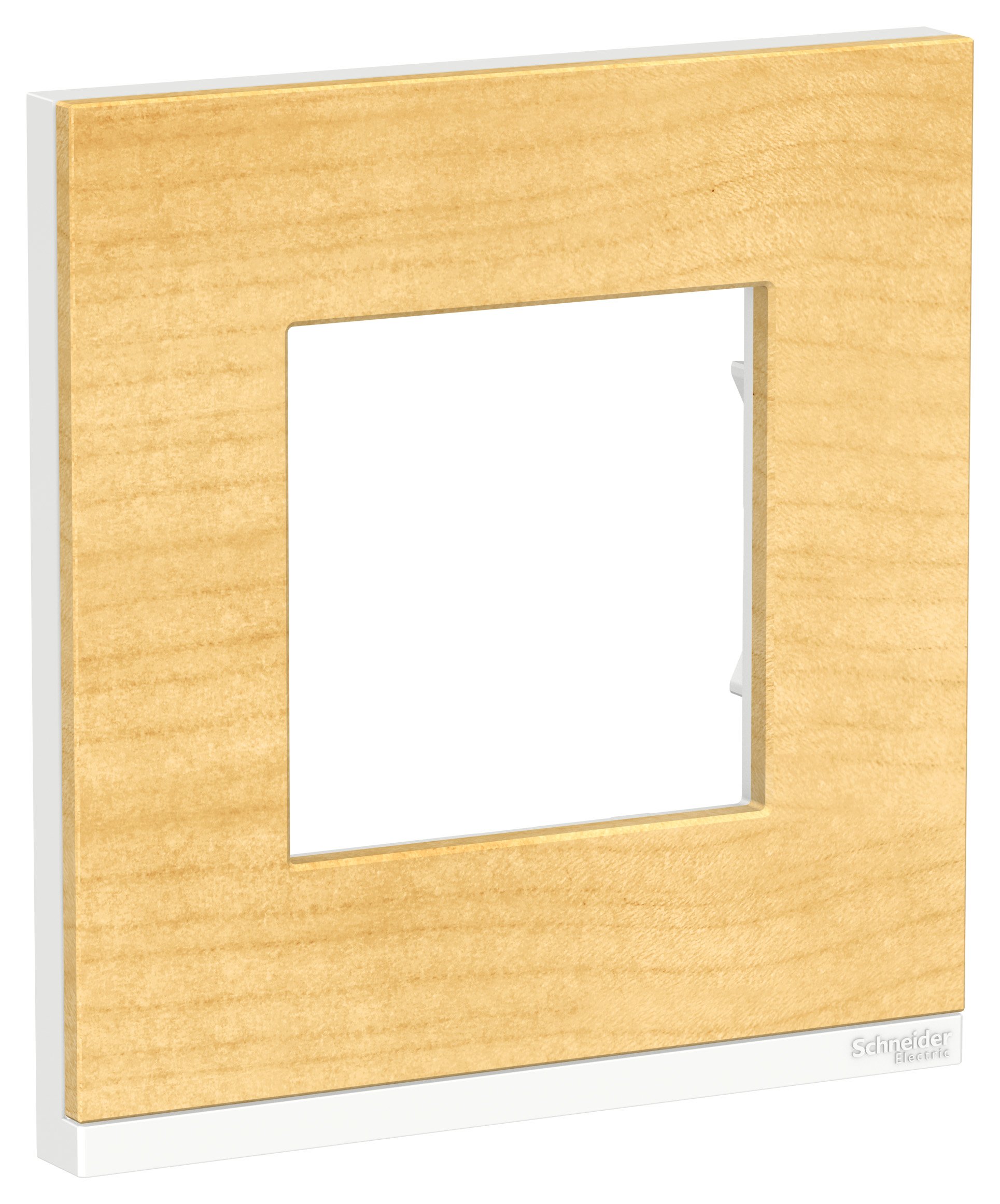 Рамка Schneider Electric UNICA PURE (клён) одинарная с задней панелью цвета белый.