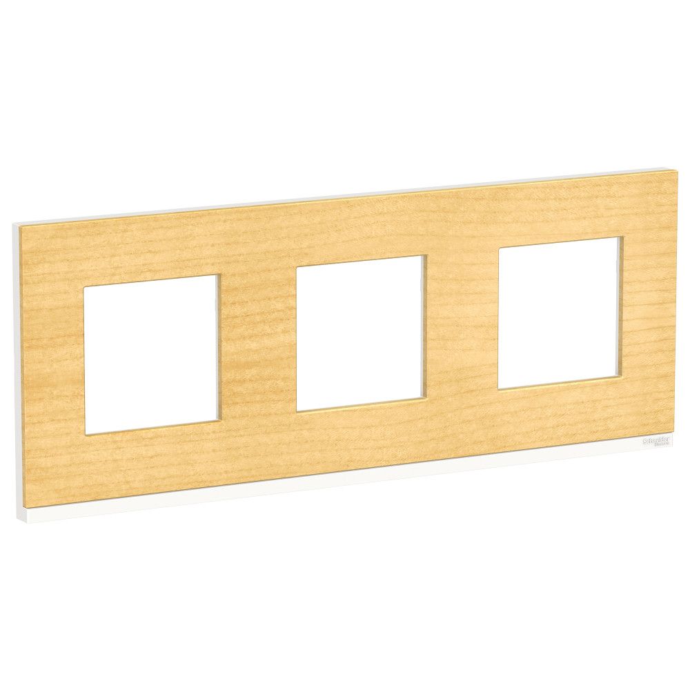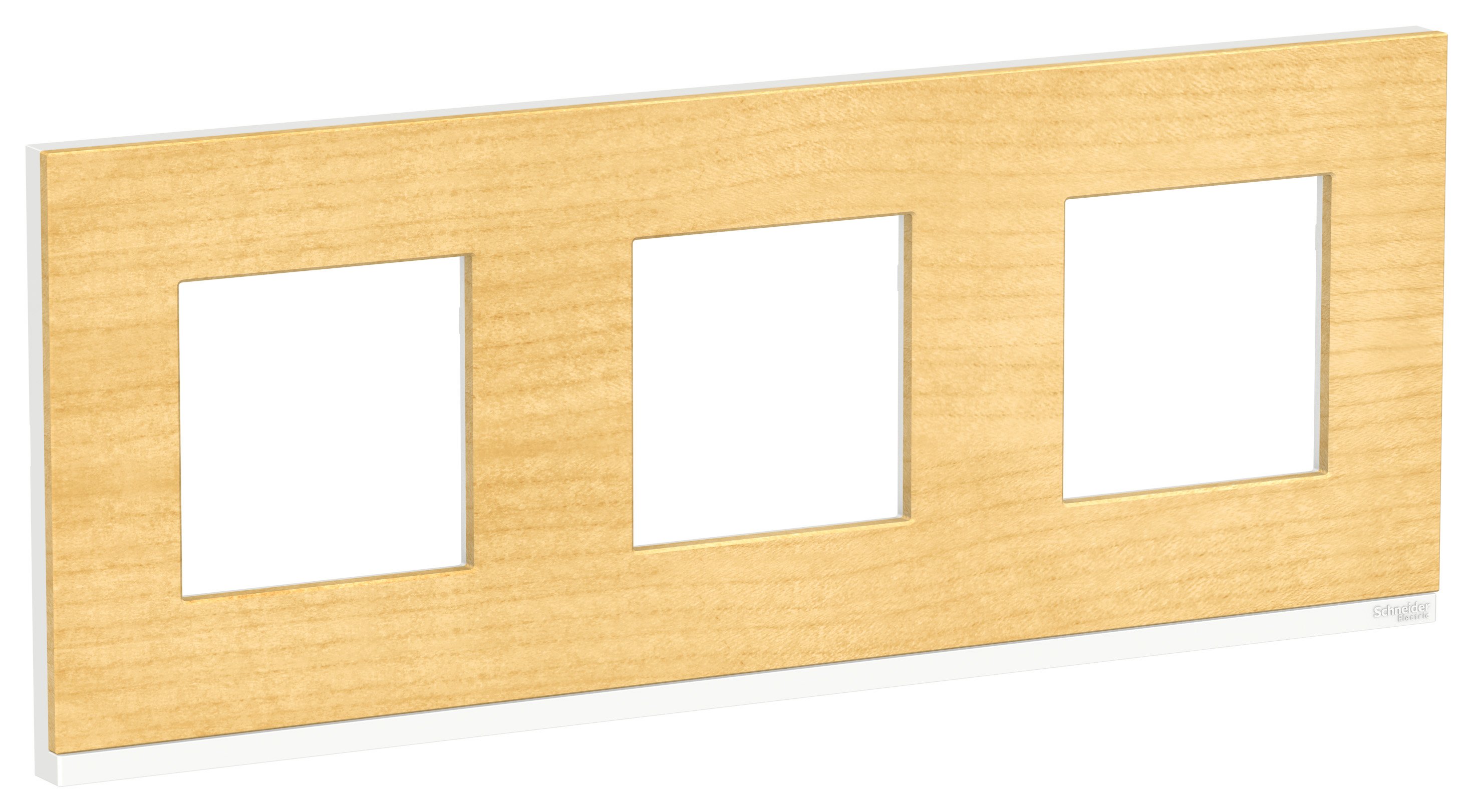 Рамка Schneider Electric UNICA PURE (клён) трёхместная с задней панелью цвета белый.