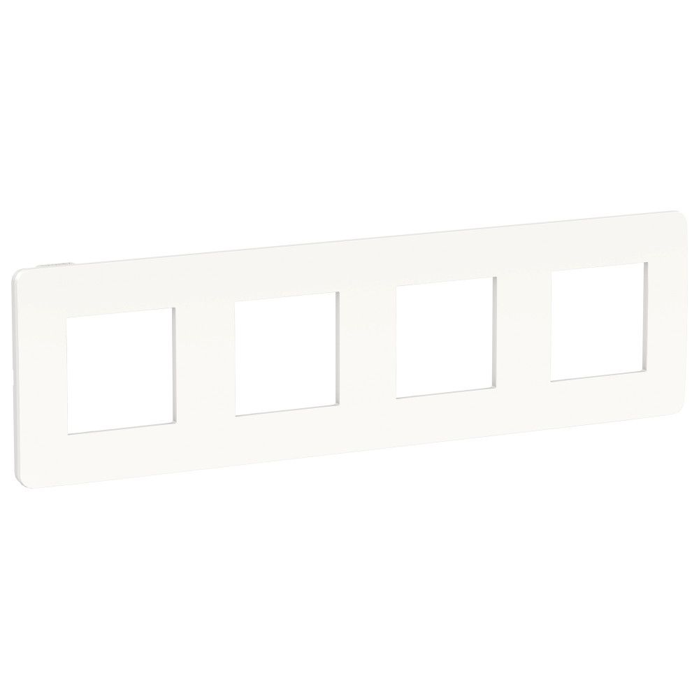 Рамка Schneider Electric UNICA STUDIO Color (белый) четырёхместная с задней панелью цвета белый.