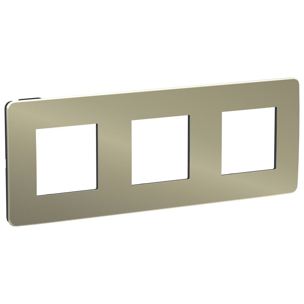 Рамка Schneider Electric UNICA STUDIO Metal (бронза) трёхместная с задней панелью цвета антрацит.