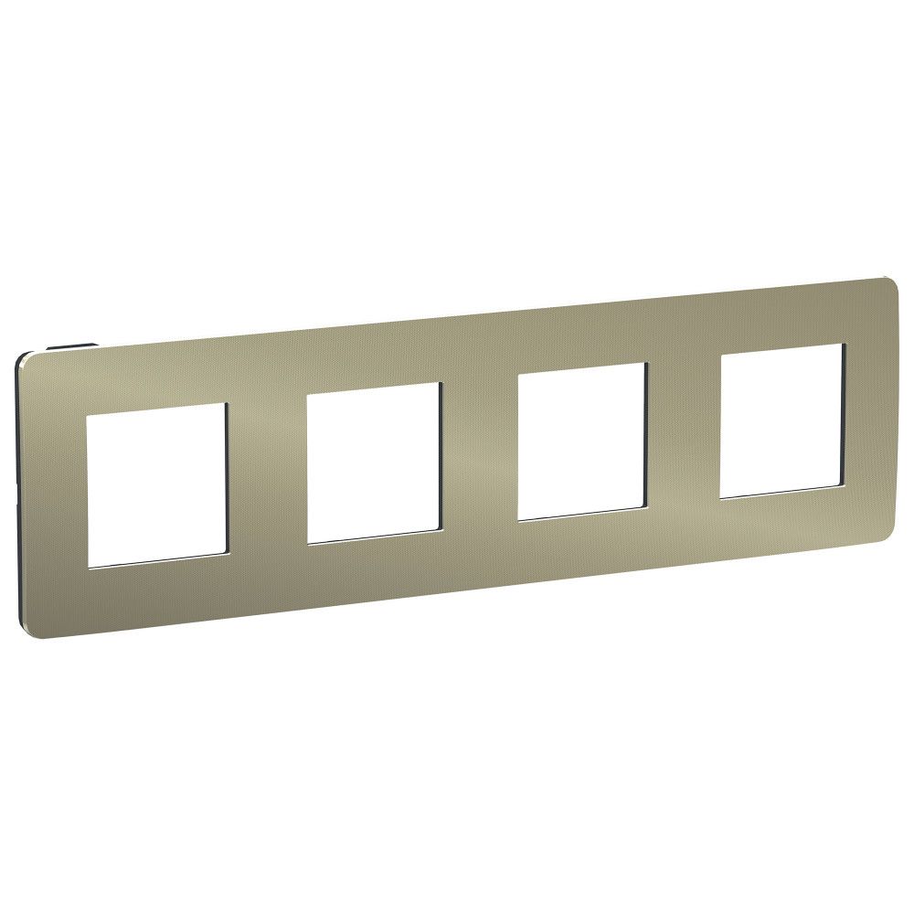 Рамка Schneider Electric UNICA STUDIO Metal (бронза) четырёхместная с задней панелью цвета антрацит.