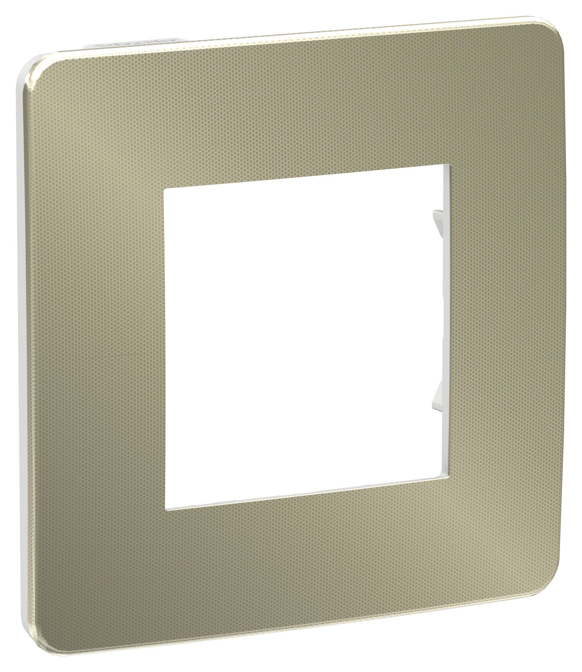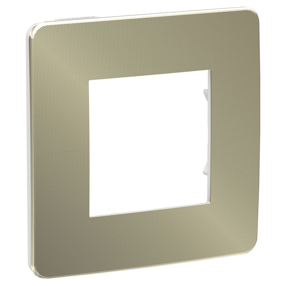 Рамка Schneider Electric UNICA STUDIO Metal (бронза) одинарная с задней панелью цвета белый.