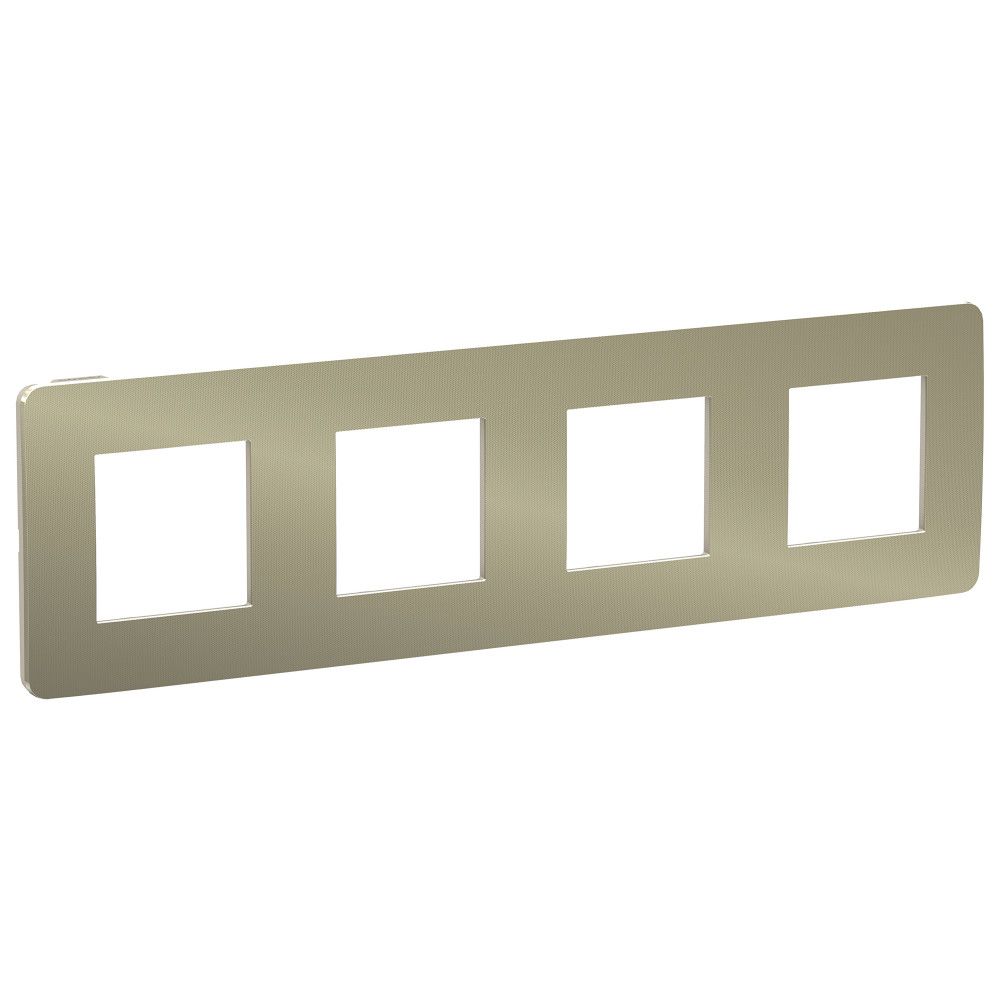 Рамка Schneider Electric UNICA STUDIO Metal (бронза) четырёхместная с задней панелью цвета бежевый.