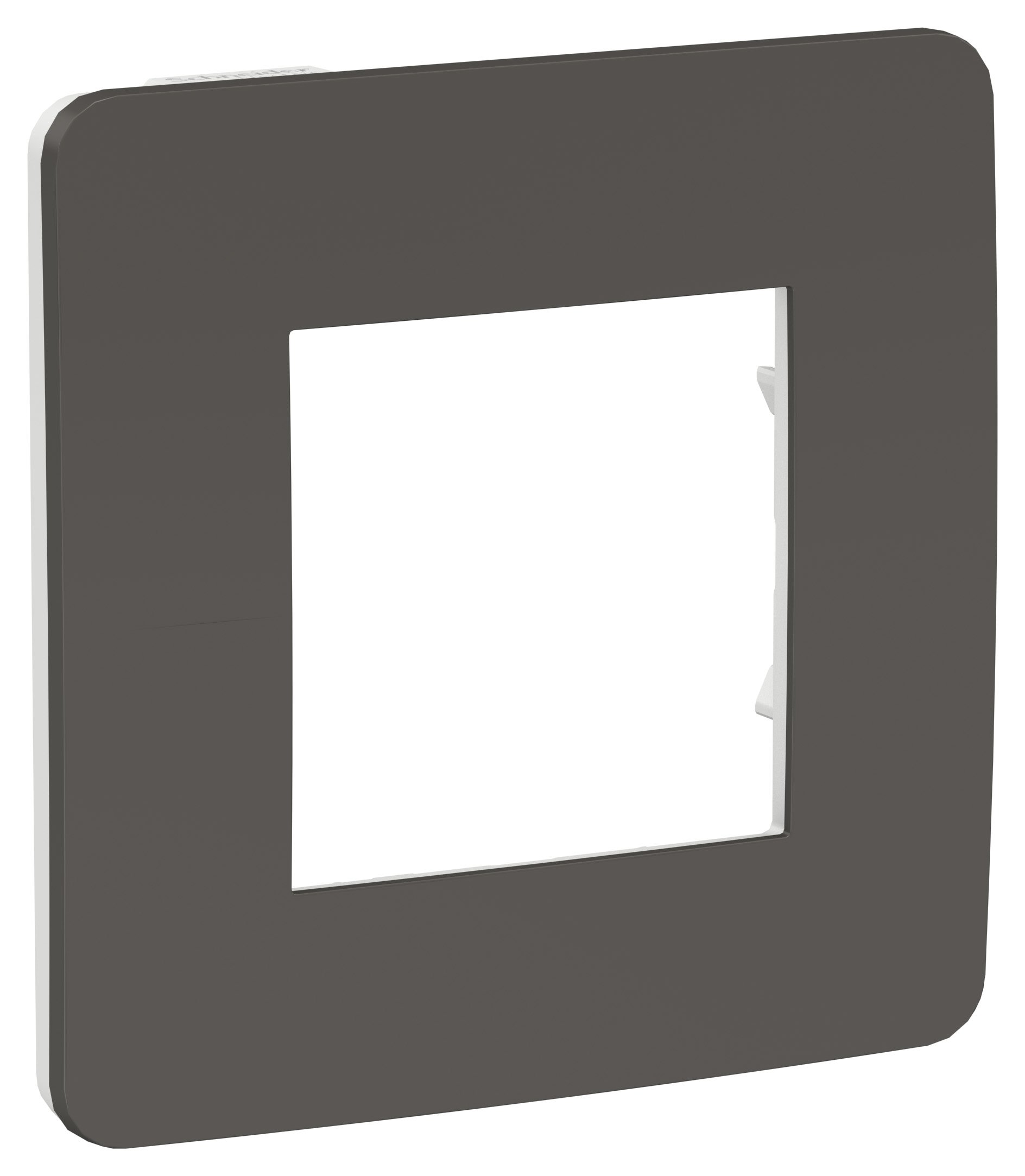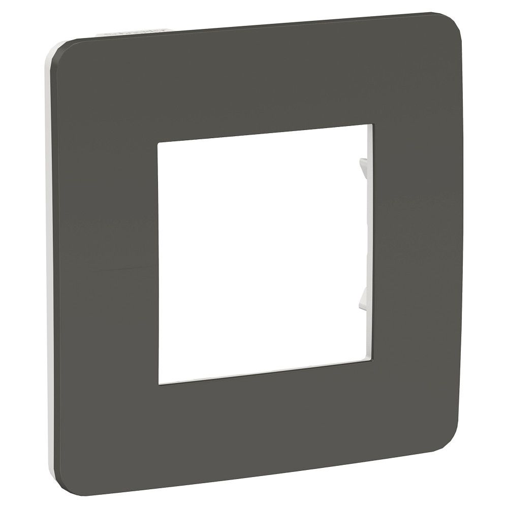 Рамка Schneider Electric UNICA STUDIO Color (дымчато-серый) одинарная с задней панелью цвета белый.