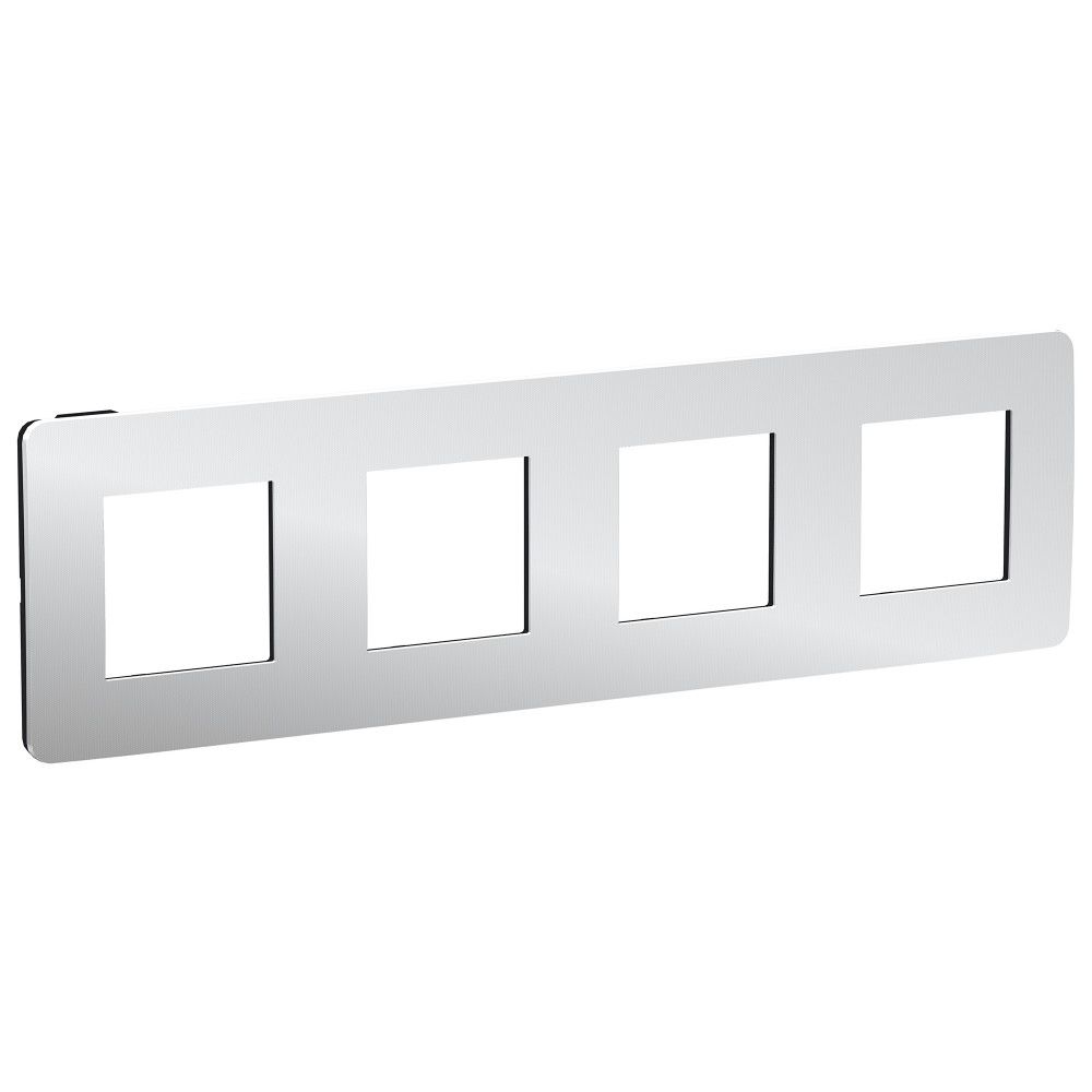 Рамка Schneider Electric UNICA STUDIO Metal (хром) четырёхместная с задней панелью цвета антрацит.