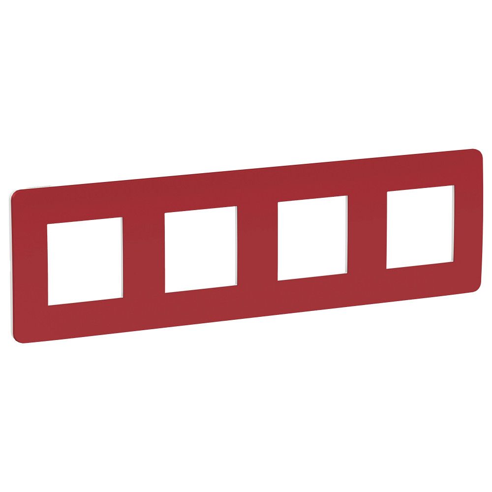 Рамка Schneider Electric UNICA STUDIO Color (красный) четырёхместная с задней панелью цвета белый.