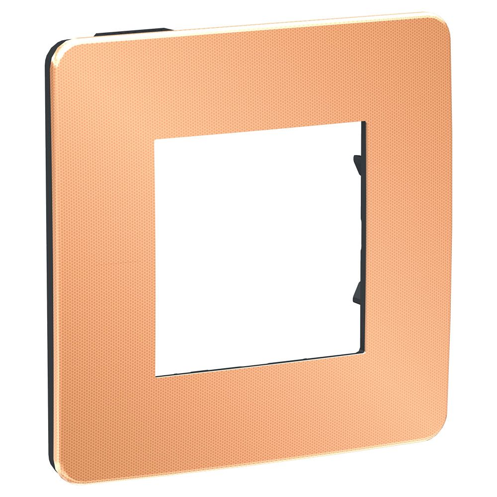 Рамка Schneider Electric UNICA STUDIO Metal (медь) одинарная с задней панелью цвета антрацит.