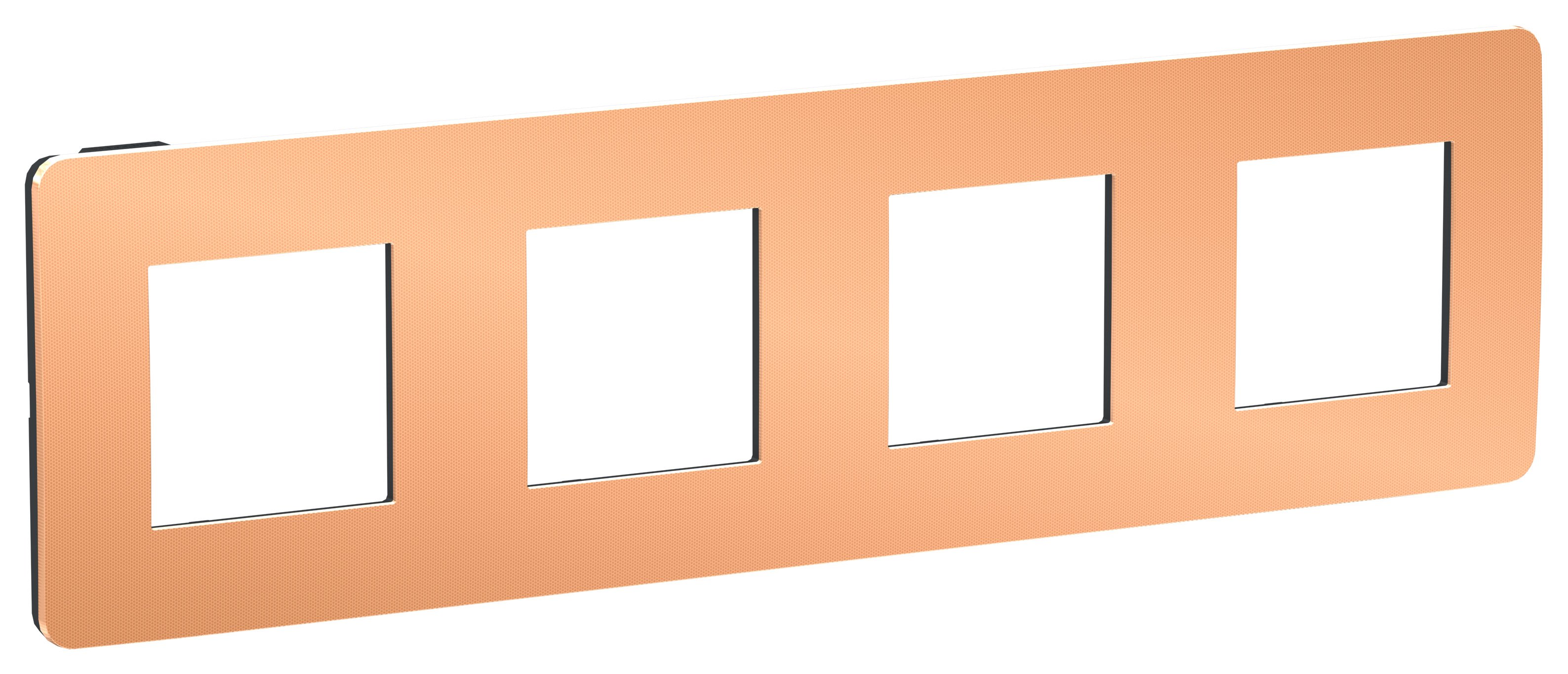 Рамка Schneider Electric UNICA STUDIO Metal (медь) четырёхместная с задней панелью цвета антрацит.
