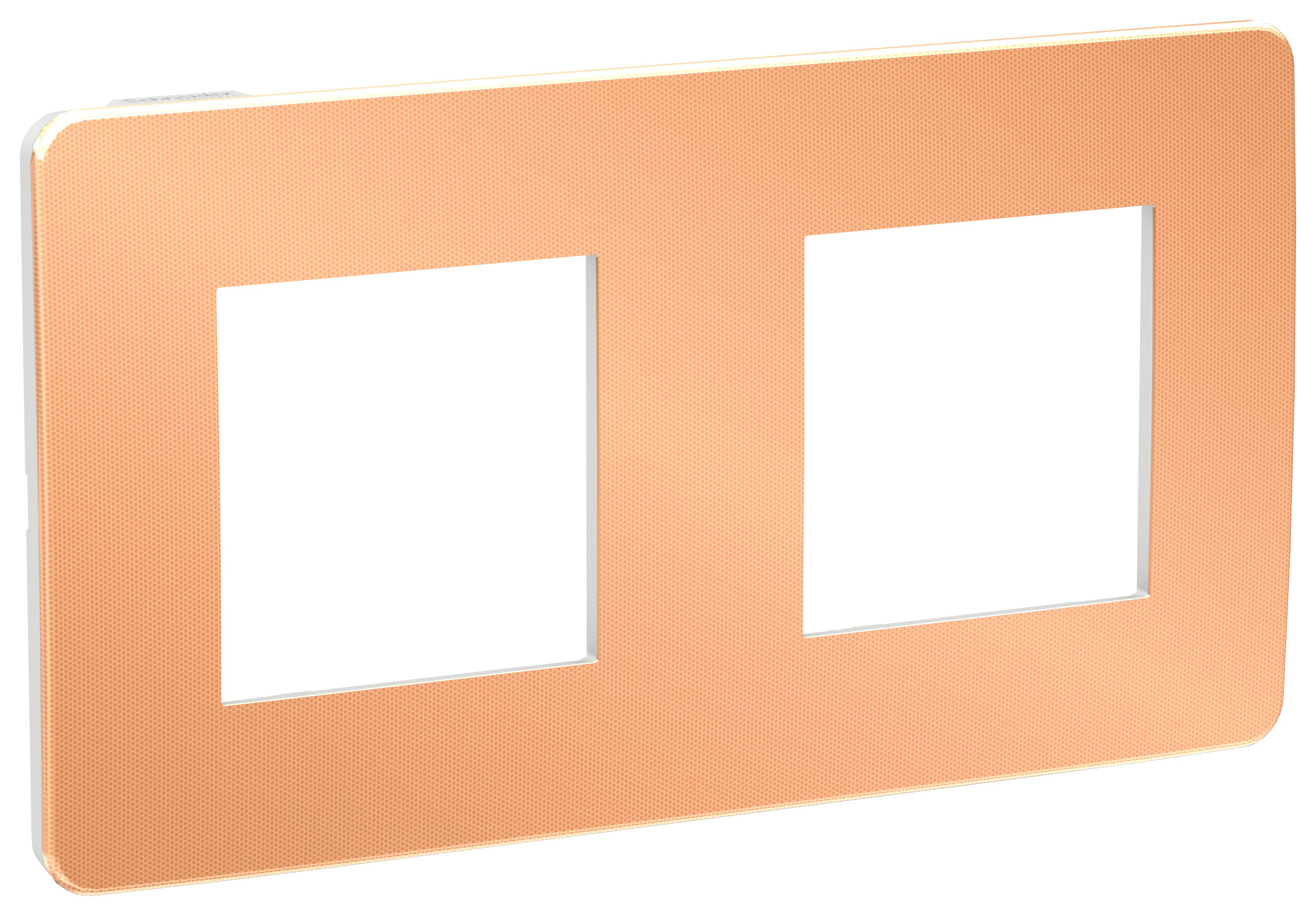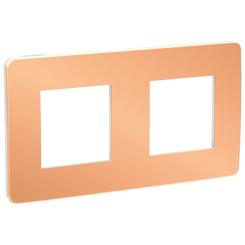 Рамка Schneider Electric UNICA STUDIO Metal (медь) двухместная с задней панелью цвета белый.