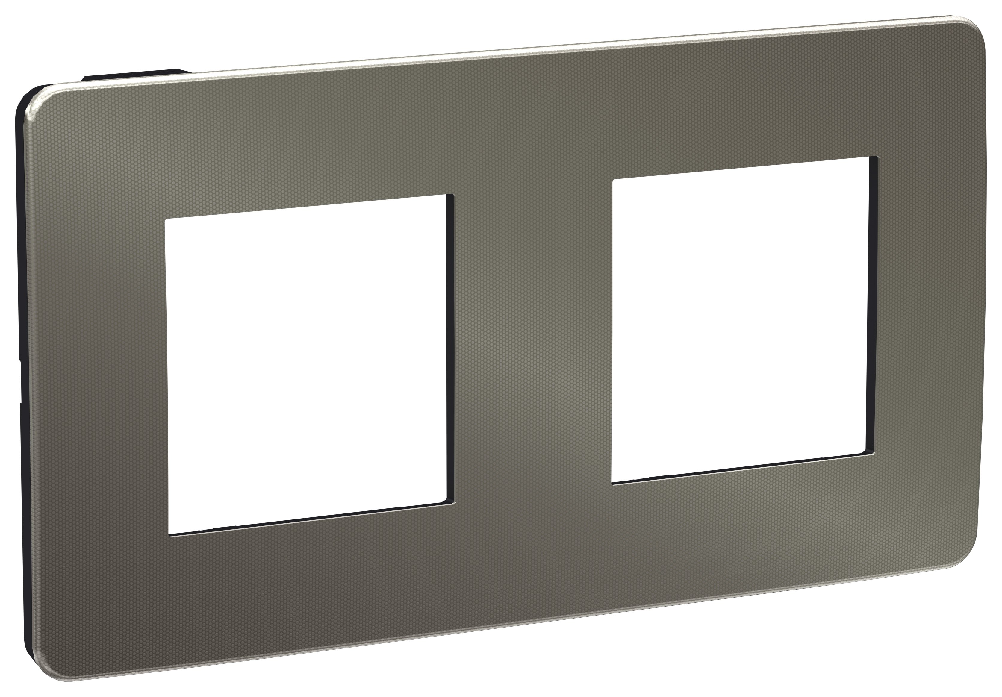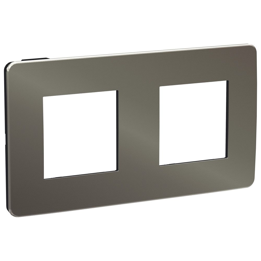 Рамка Schneider Electric UNICA STUDIO Metal (никель) двухместная с задней панелью цвета антрацит.