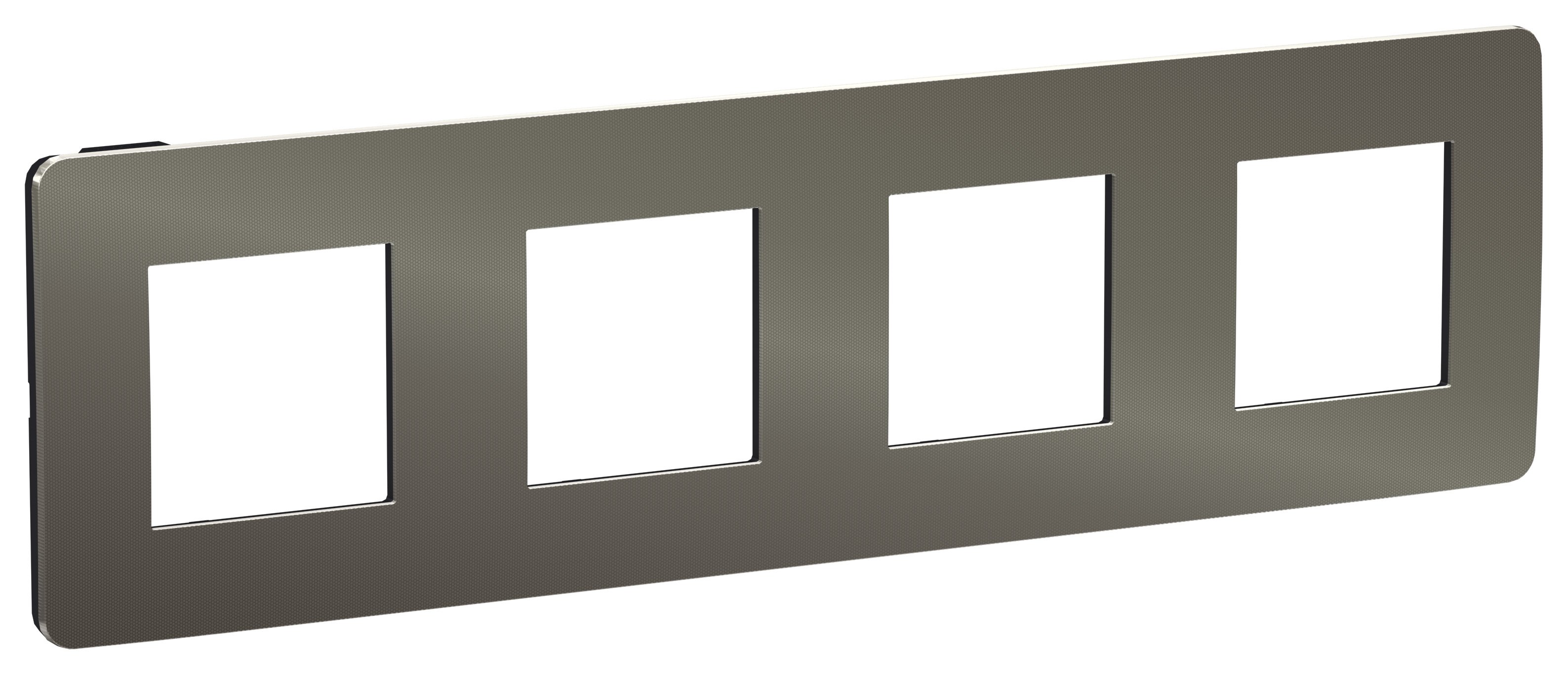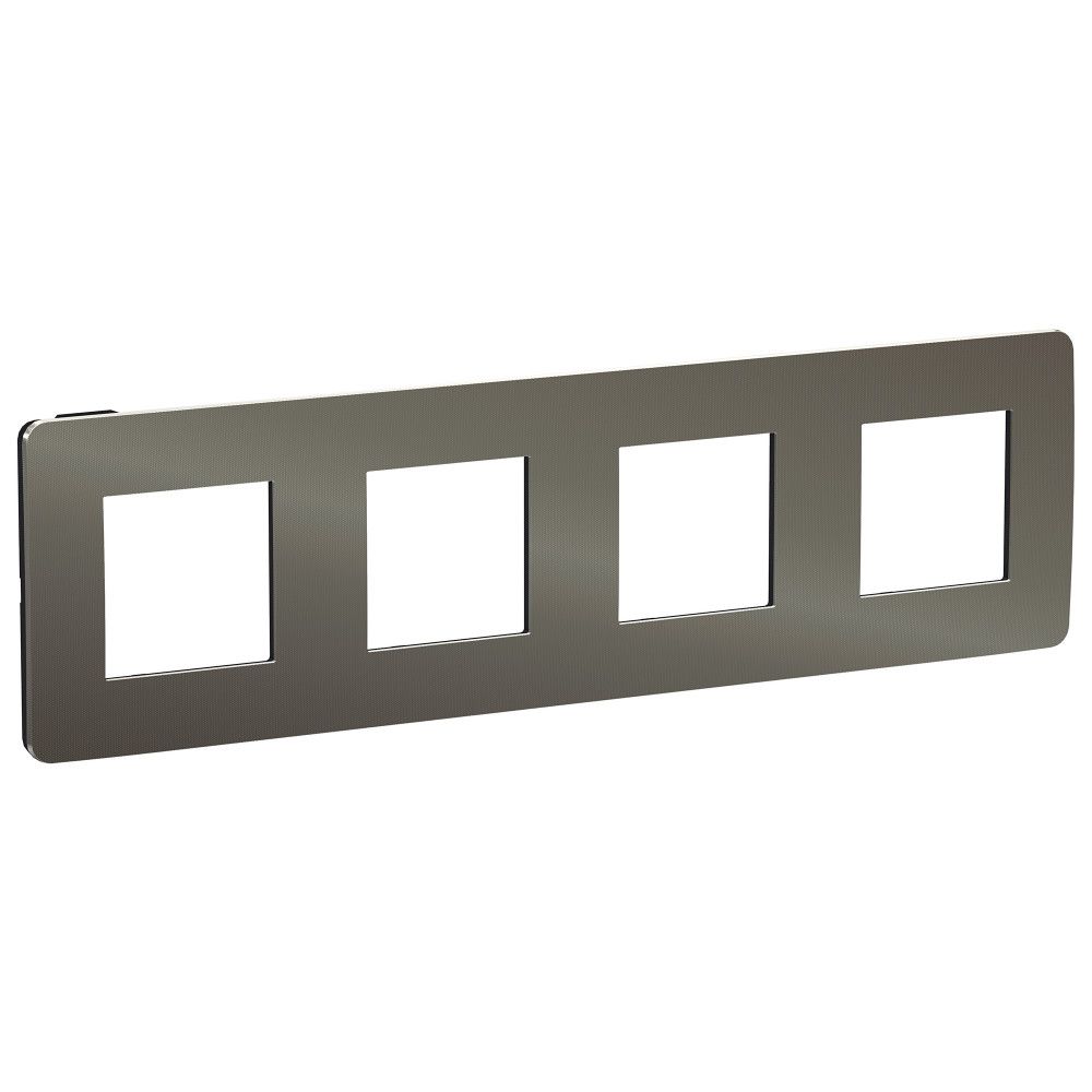 Рамка Schneider Electric UNICA STUDIO Metal (никель) четырёхместная с задней панелью цвета антрацит.
