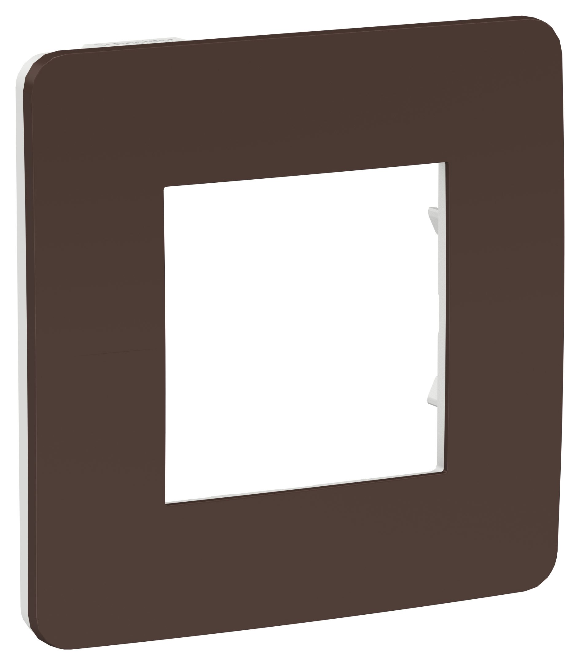 Рамка Schneider Electric UNICA STUDIO Color (шоколад) одинарная с задней панелью цвета белый.