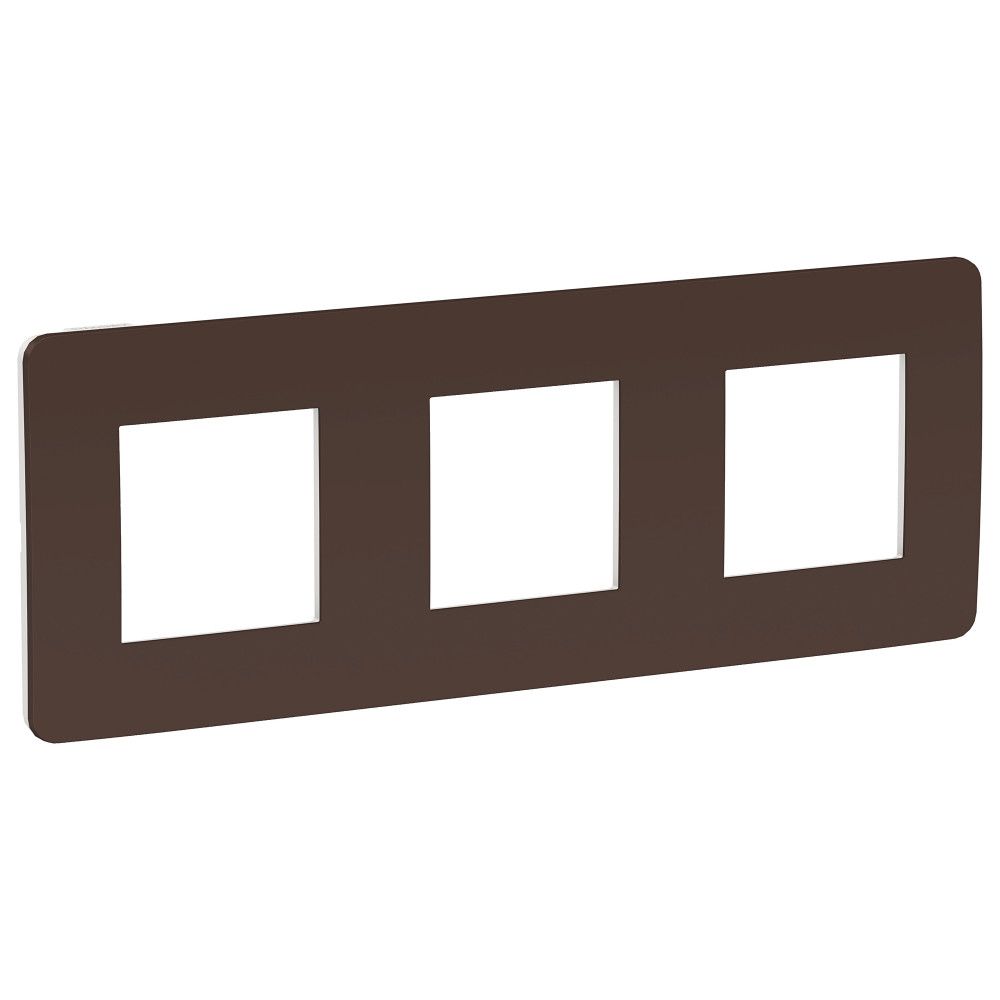Рамка Schneider Electric UNICA STUDIO Color (шоколад) трёхместная с задней панелью цвета белый.