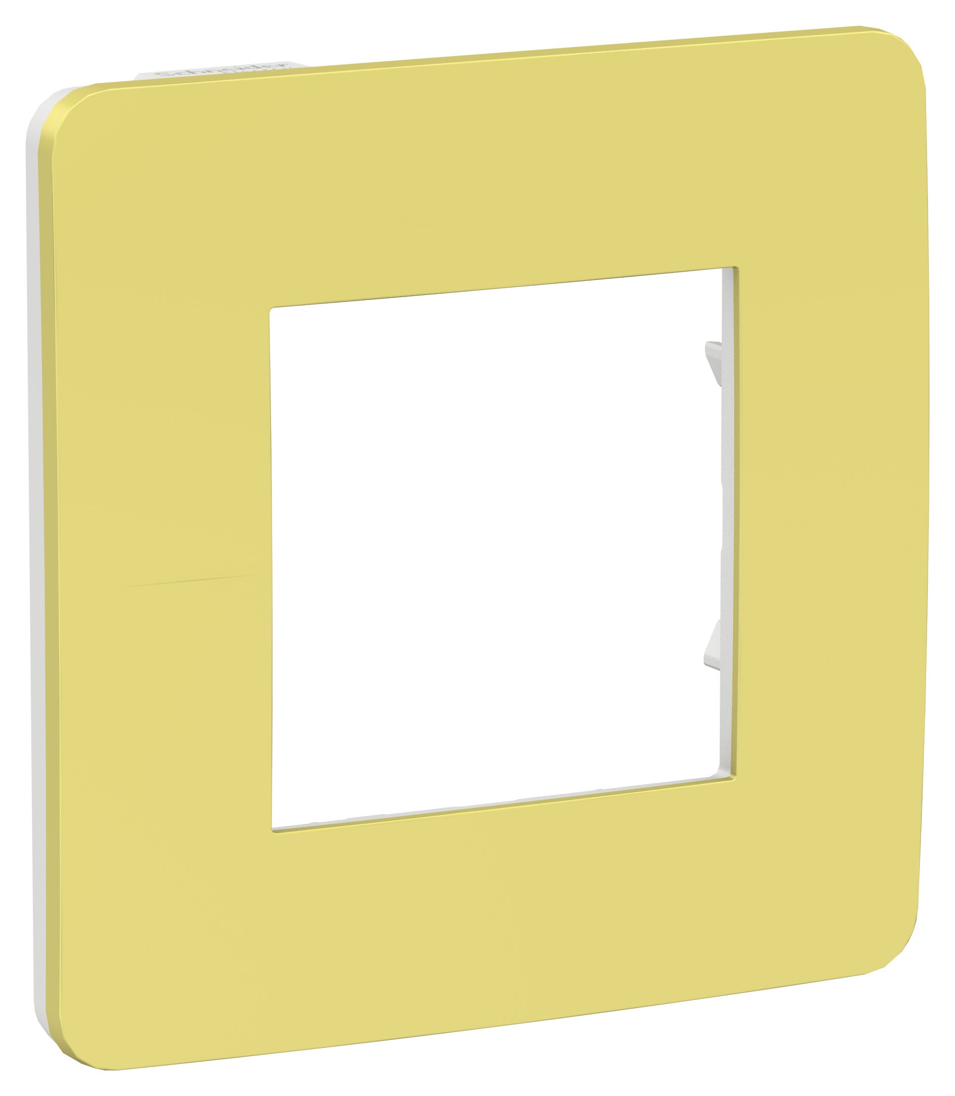 Рамка Schneider Electric UNICA STUDIO Color (зелёное яблоко) одинарная с задней панелью цвета белый.