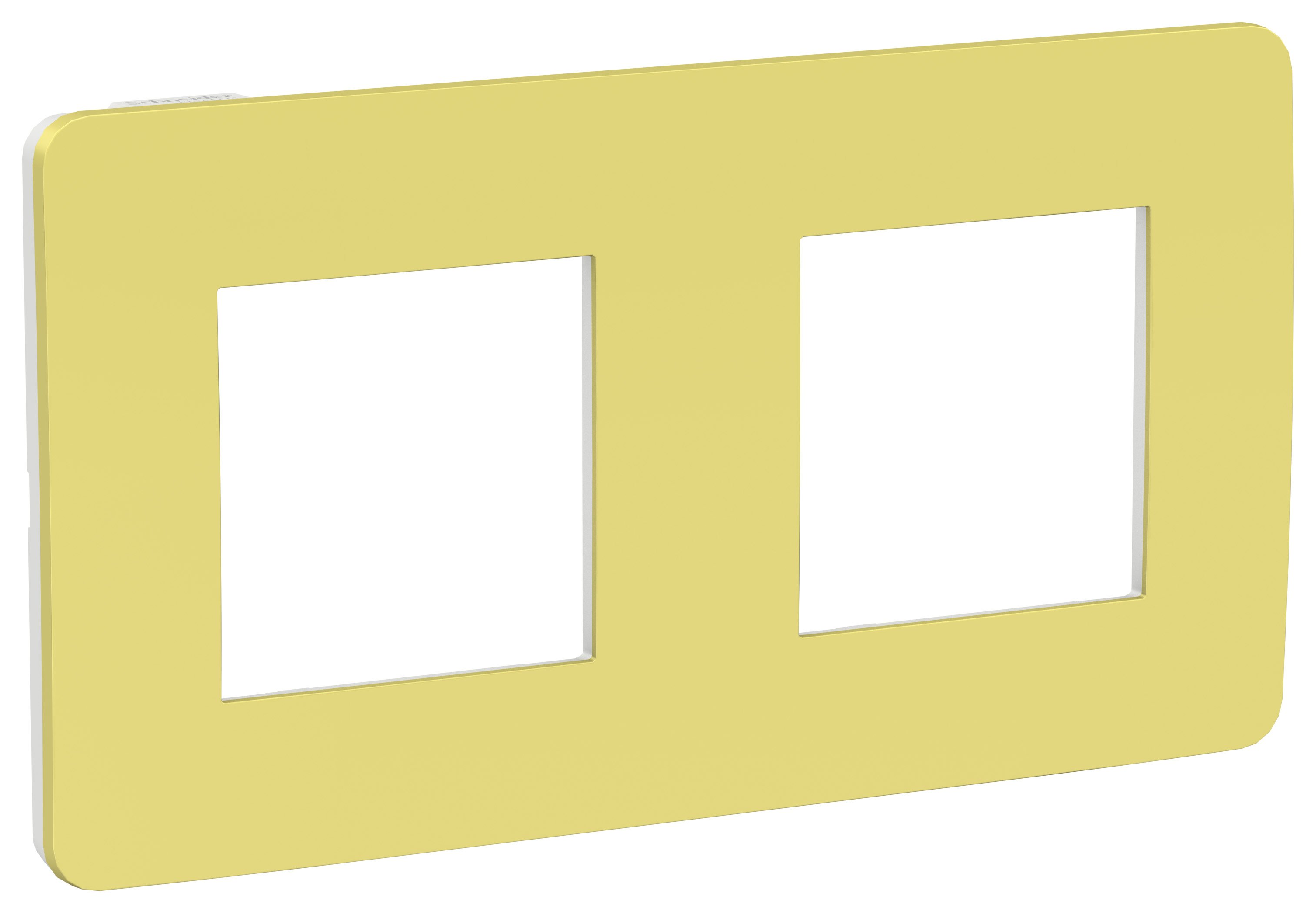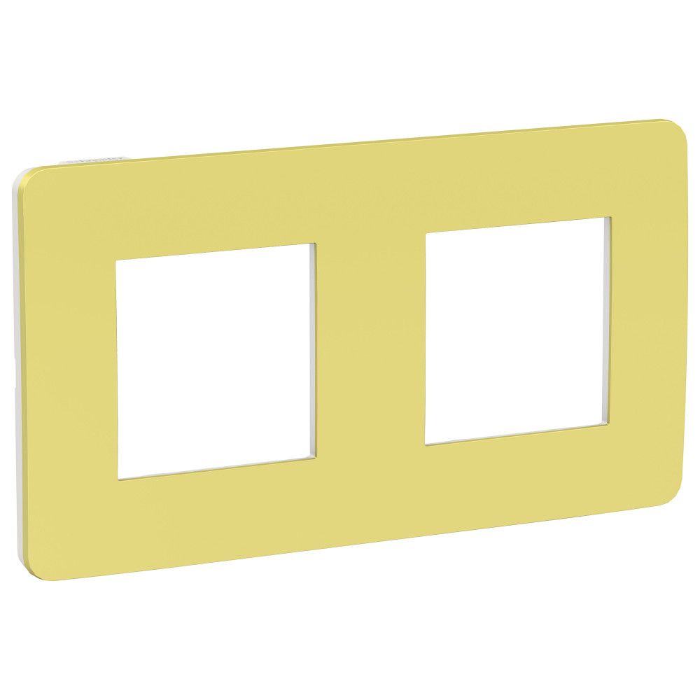 Рамка Schneider Electric UNICA STUDIO Color (зелёное яблоко) двухместная с задней панелью цвета бежевый.