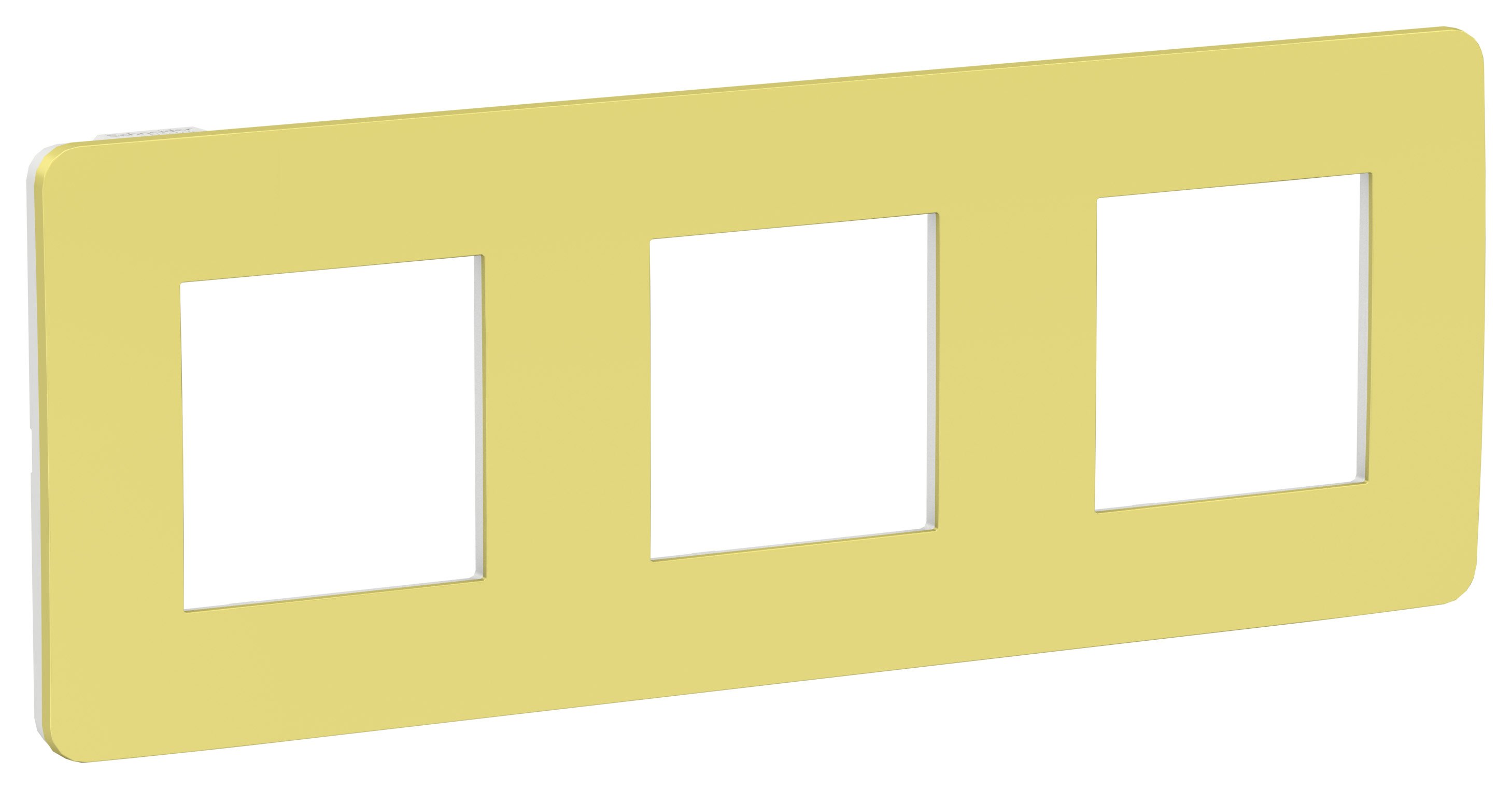 Рамка Schneider Electric UNICA STUDIO Color (зелёное яблоко) трёхместная с задней панелью цвета бежевый.