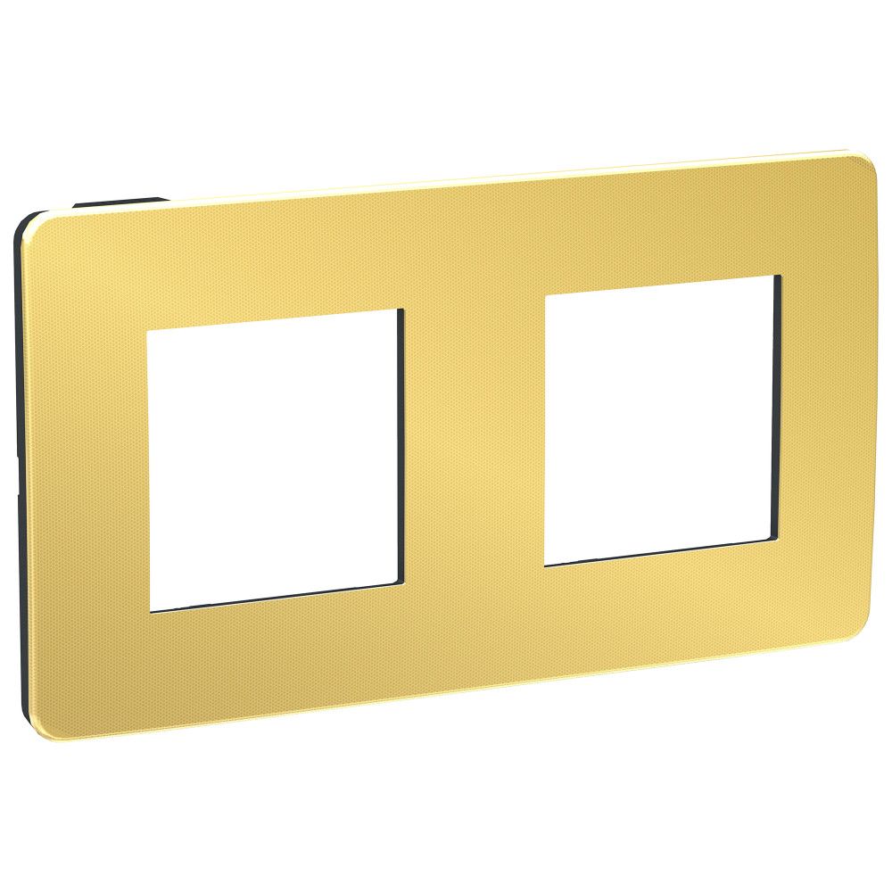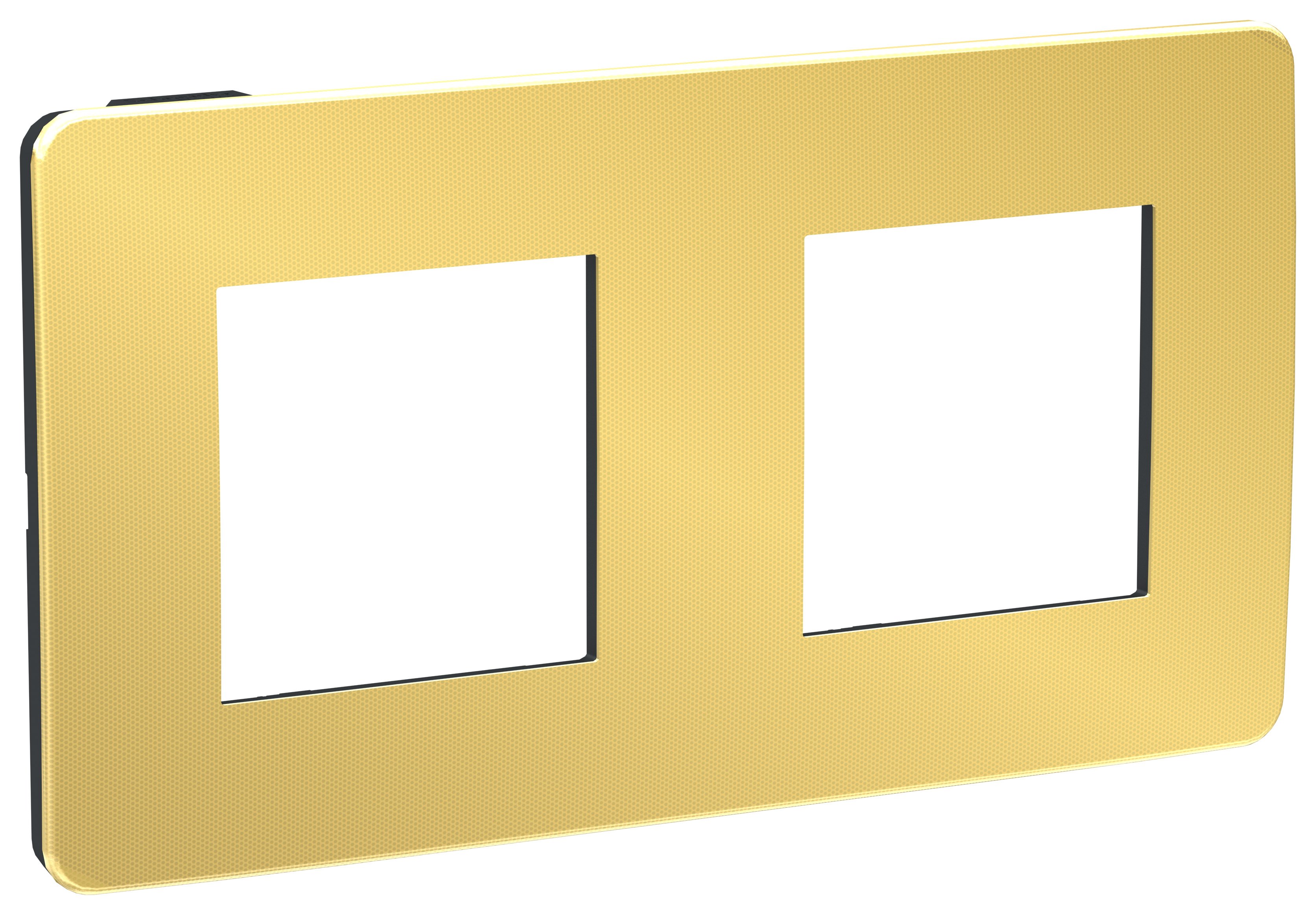 Рамка Schneider Electric UNICA STUDIO Metal (золото) двухместная с задней панелью цвета антрацит.