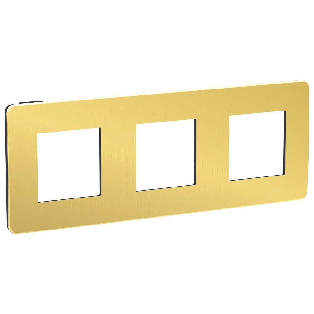 Рамка Schneider Electric UNICA STUDIO Metal (золото) трёхместная с задней панелью цвета антрацит.