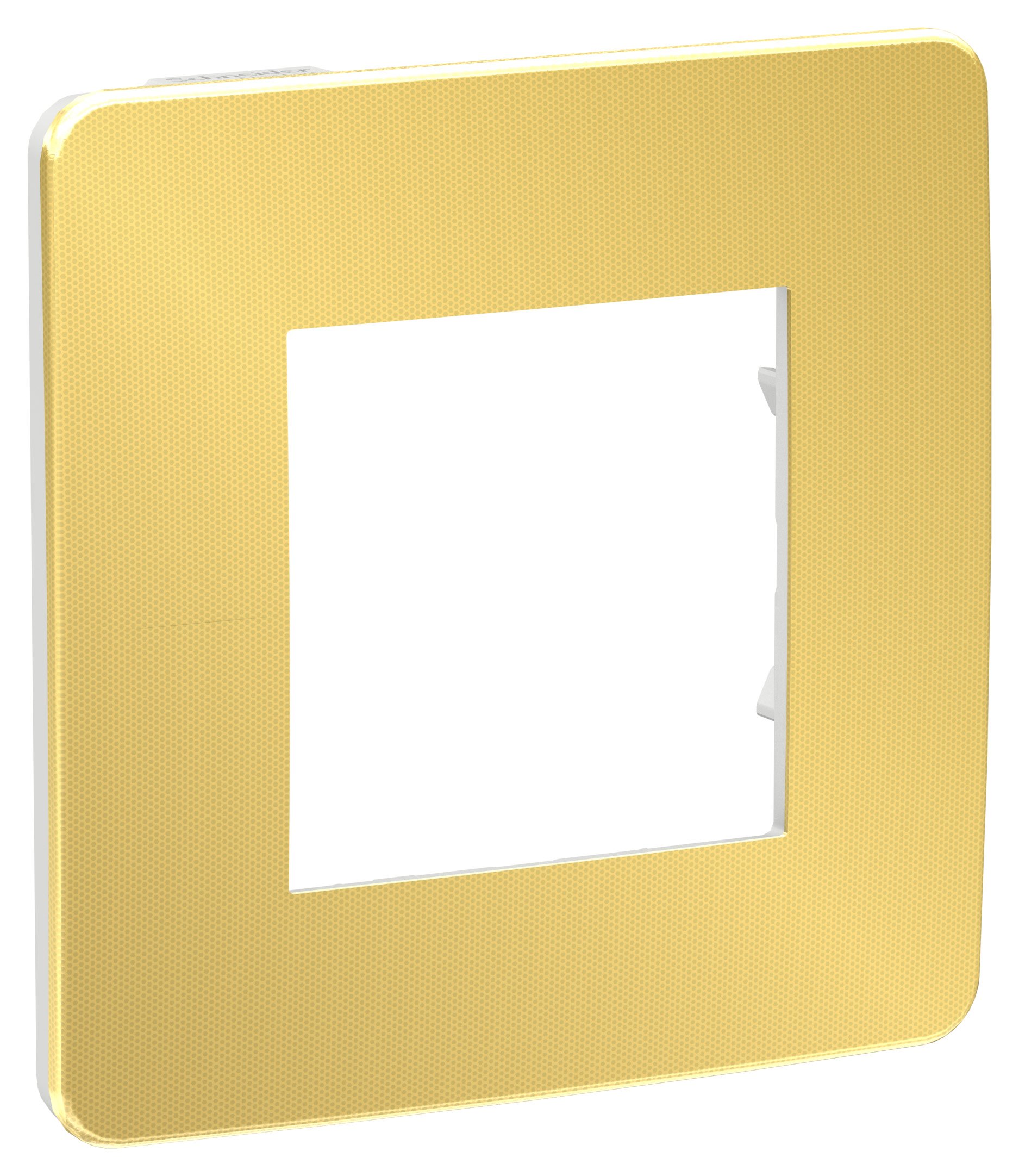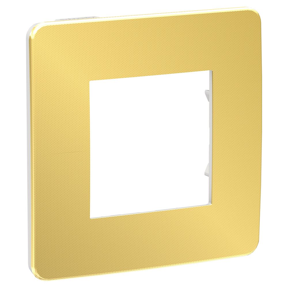 Рамка Schneider Electric UNICA STUDIO Metal (золото) одинарная с задней панелью цвета белый.
