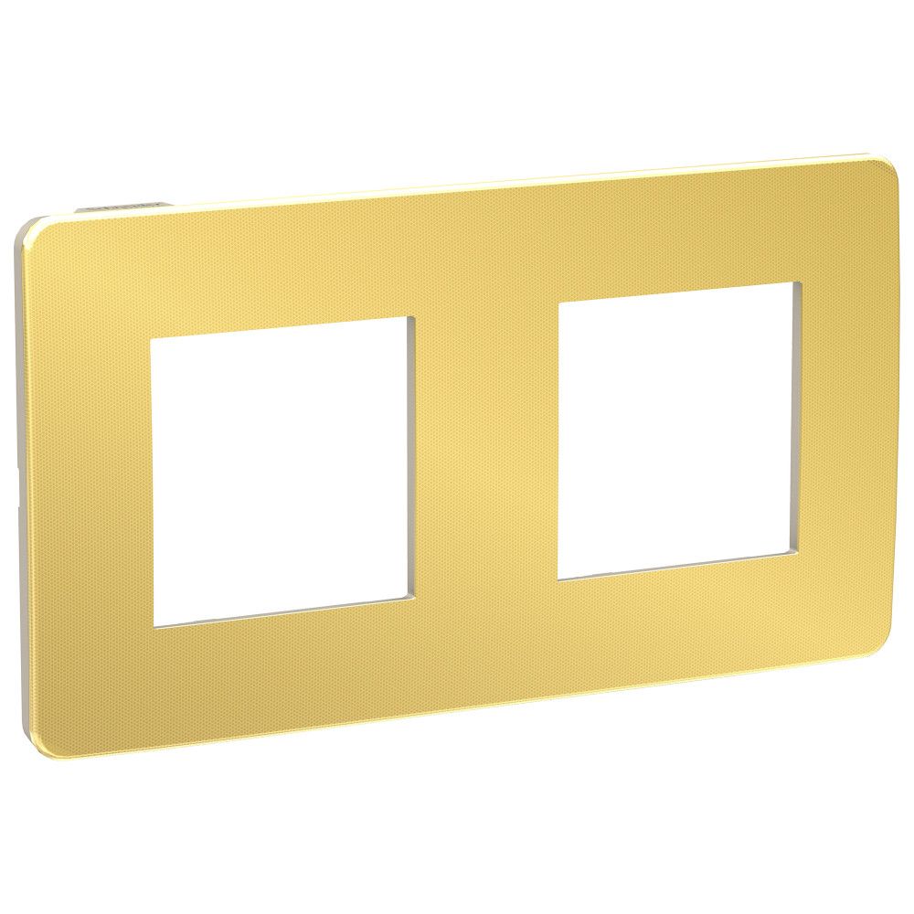 Рамка Schneider Electric UNICA STUDIO Metal (золото) двухместная с задней панелью цвета бежевый.