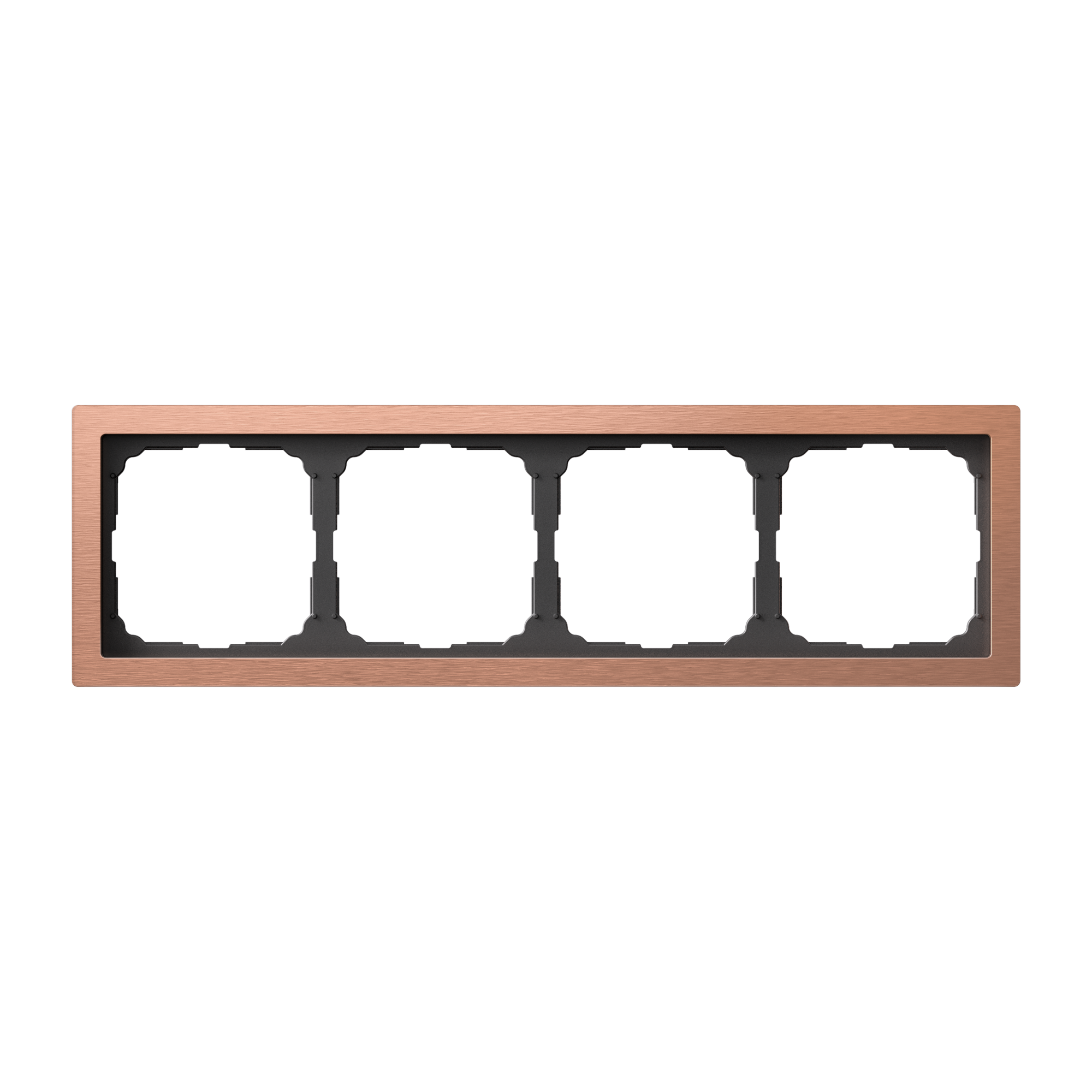 Рамка Systeme Electric серии ArtGallery Pure из металла в цвете медь, в 4-х постовом исполнении. Металл медь - розово-золотой оттенок с живым металлическим переливом, для смелых акцентов. Установка возможна в вертикальном и горизонтальном положениях.