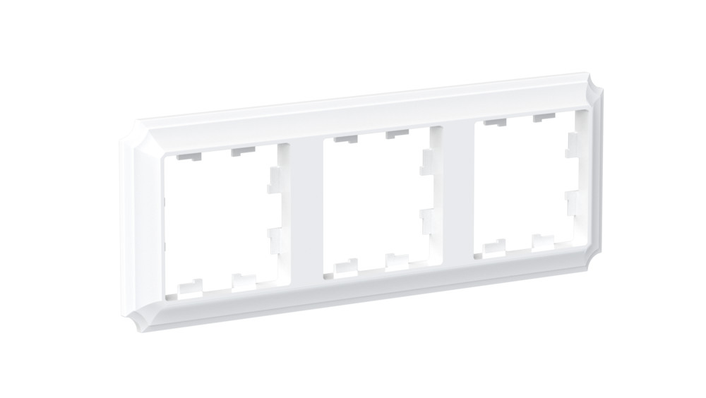 Рамка Systeme Electric (ранее Schneider Electric) серии AtlasDesign Antique (цвет белый) трехпостовая. Выполнена из материала PС+ASA, стойкого к УФ-излучению и появлению царапин. Серия рамок AtlasDesign Antique отвечает высочайшим эстетическим требованиям и превосходно вписывается в изысканный классический интерьер. Теперь традиционный выключатель может стать поистине декоративным элементом.