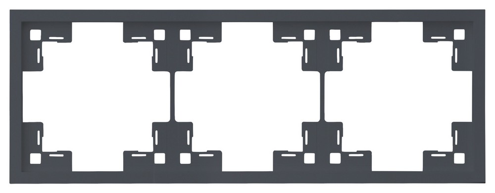 Трехместная рамка цвета базальт коллекции Standart. Подходит для горизонтальной и вертикальной установки. Размер 83,5х222,5х9,6 мм.
