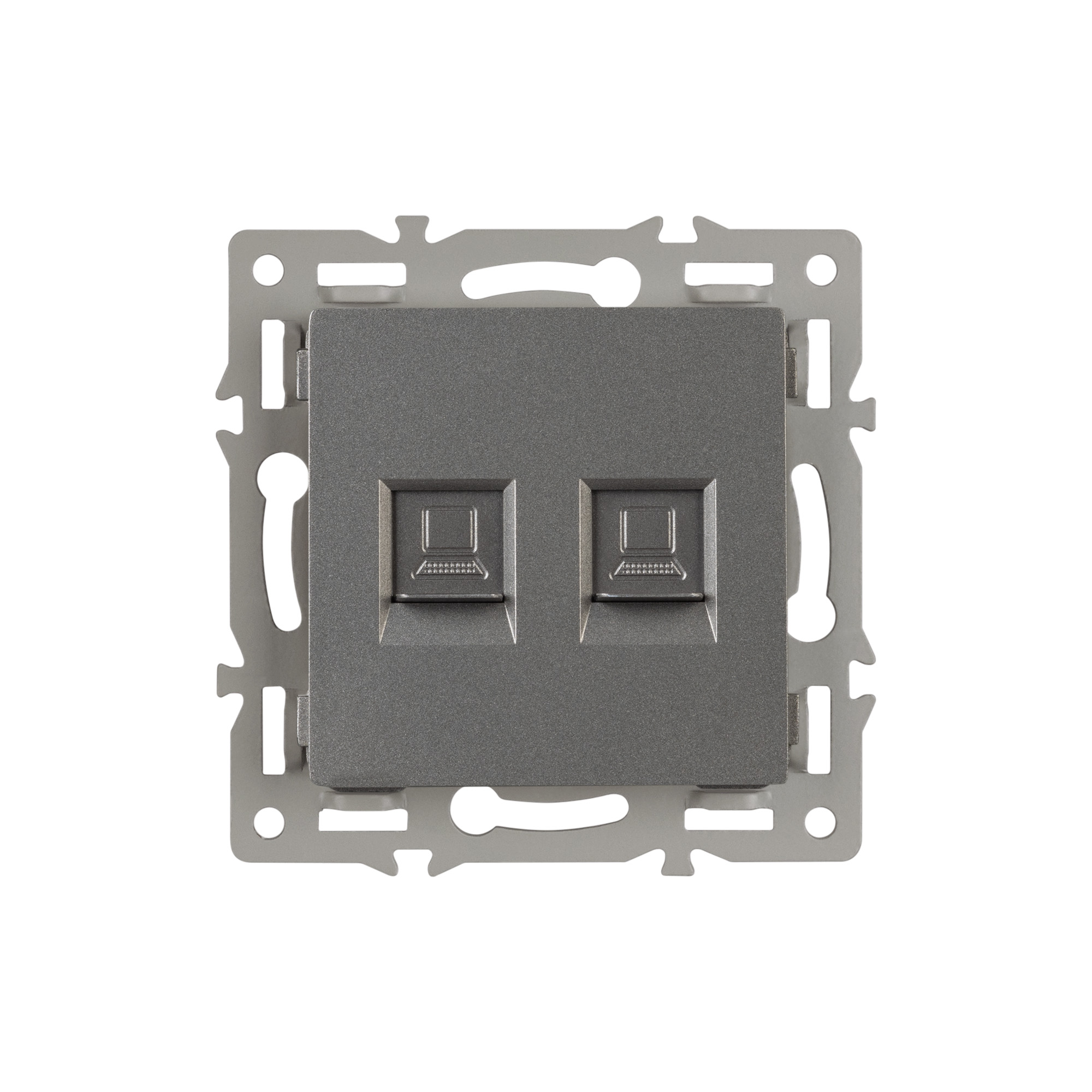 Механизм компьютерной розетки на 1 пост 2 слота 6-й категории (CAT6), с суппортом из алюминия. Цвет - серый. Степень пылевлагозащиты - IP20.