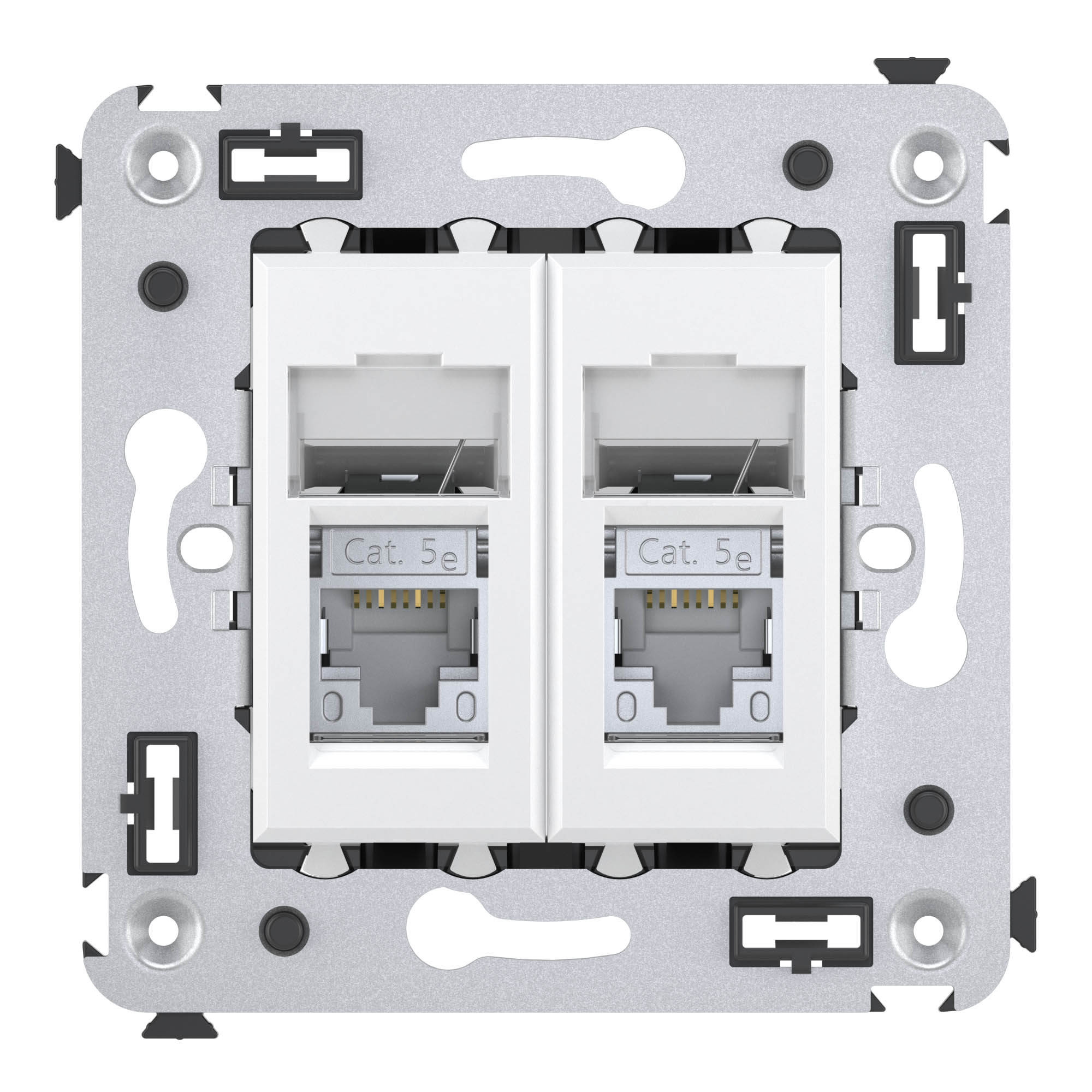 Компьютерная розетка двойная используется для подключения компьютерной техники и соединения с патч-панелью. Компьютерная розетка предназначена для скрытого монтажа в стену. Розетка RJ-45 категории 5e – это наиболее популярная на сегодняшний день модель. Она позволяет организовать сеть с частотой 125 МГц и скоростью до 1000 Мбит/с. Материал – металл, термопласт. Пластиковые части устройства имеют оттенок "Белое облако" – это чистый белый оттенок, сочетающийся с любыми цветами палитры "Avanti". Сложный воздушный оттенок оттеняет другие цвета, создает ощущение покоя и умиротворения.