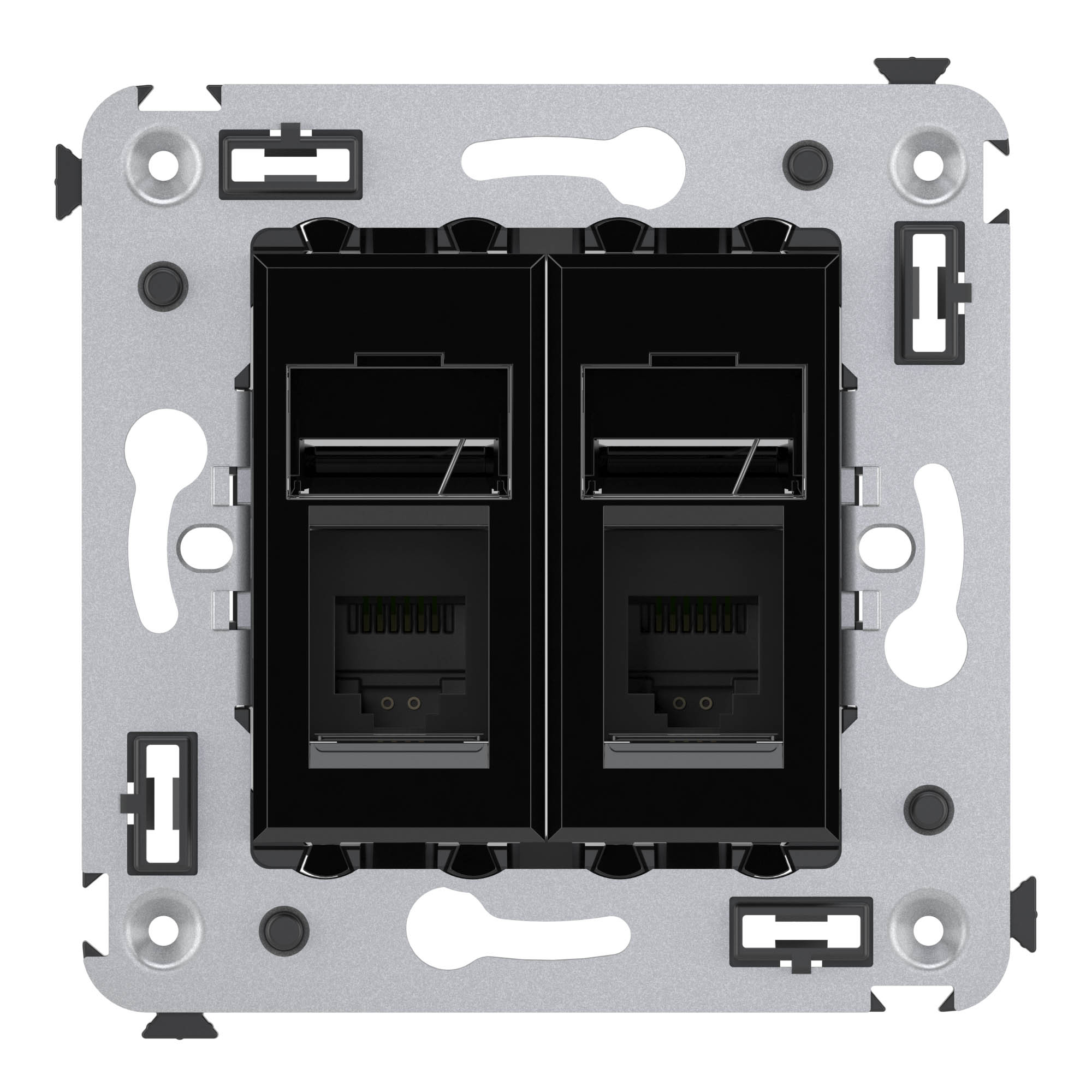 Телефонная розетка RJ-12 от ДКС устанавливается в стену (скрыто) и применяется для связи телефонных линий или же коммутации телефонных аппаратов с розеткой. Розетка имеет два разъема. Материал – металл, термопласт. Пластиковые части имеют нежный оттенок "Черный квадрат" – изысканный, таинственный, мистический черный, придающий особый шарм лаконичным формам рамок для ЭУИ "Avanti".