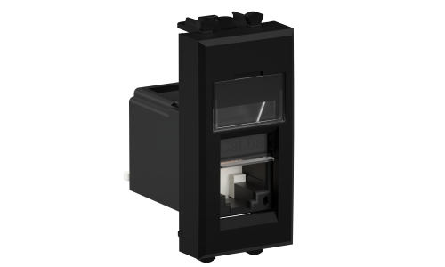 Компьютерная розетка RJ-45 модульная. Категория: 6А. Предназначена для монтажа в системы "In-liner Front" и "In-liner Aero" при помощи рамок-суппортов и каркасов "Avanti" (код 4400912 и т.д.). Используется для подключения сетевого кабеля к рабочему месту. Характеристики: 8P8C; с пылезащитной шторкой; с маркировочной табличкой; в комплекте разъем Keystone. Заделка не требует инструмента. Фиксация в подрозеточные коробки глубиной не менее 45 мм при помощи каркаса с лапками (код 4400802) и саморезов. 1 модуль. Цвет: "Черный матовый".