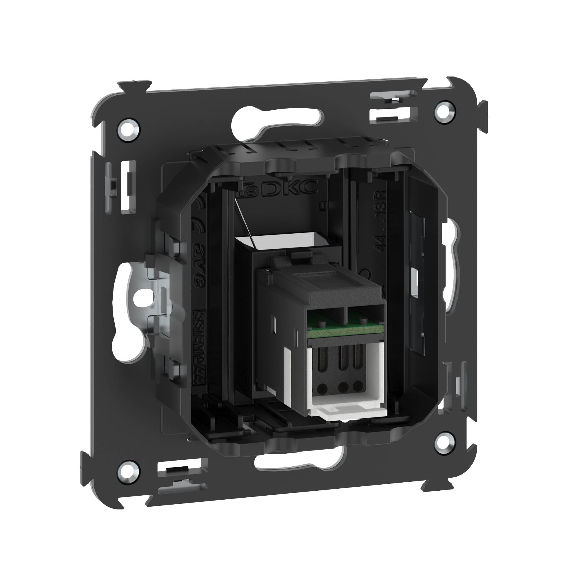 Компьютерная розетка RJ-45 в стену, одинарная. Категория: 6А. Предназначена для монтажа в подрозеточные коробки глубиной не менее 45 мм (код 59301). Используется для подключения сетевого кабеля к рабочему месту. Характеристики: 8P8C; с пылезащитной шторкой; с маркировочной табличкой. Заделка не требует инструмента. 2 модуля. Цвет: "Черный матовый".