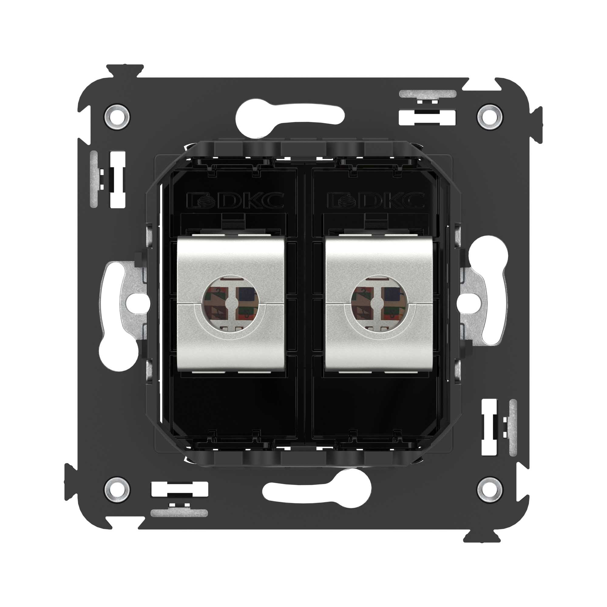 DKC Avanti Компьютерная розетка RJ-45 без шторки в стену, кат.5e двойная экранированная, Черный квадрат от производителя DKC (ДКС). Артикул производителя 4402764.