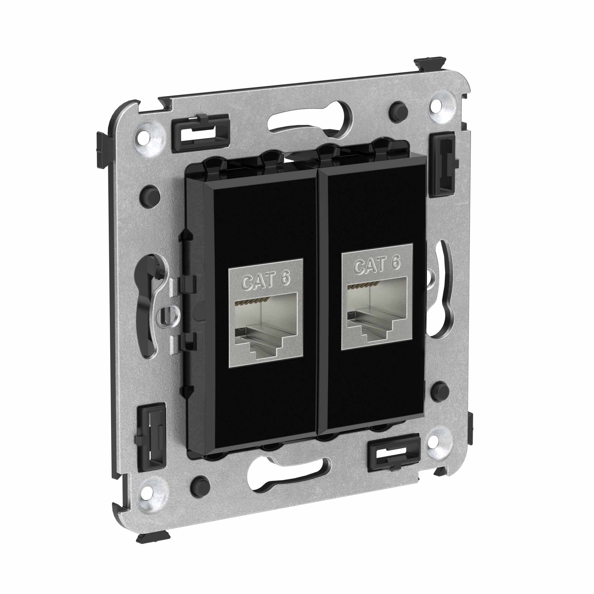 DKC Avanti Компьютерная розетка RJ-45 без шторки в стену, кат.6 двойная экранированная, Черный квадрат от производителя DKC (ДКС). Артикул производителя 4402794.