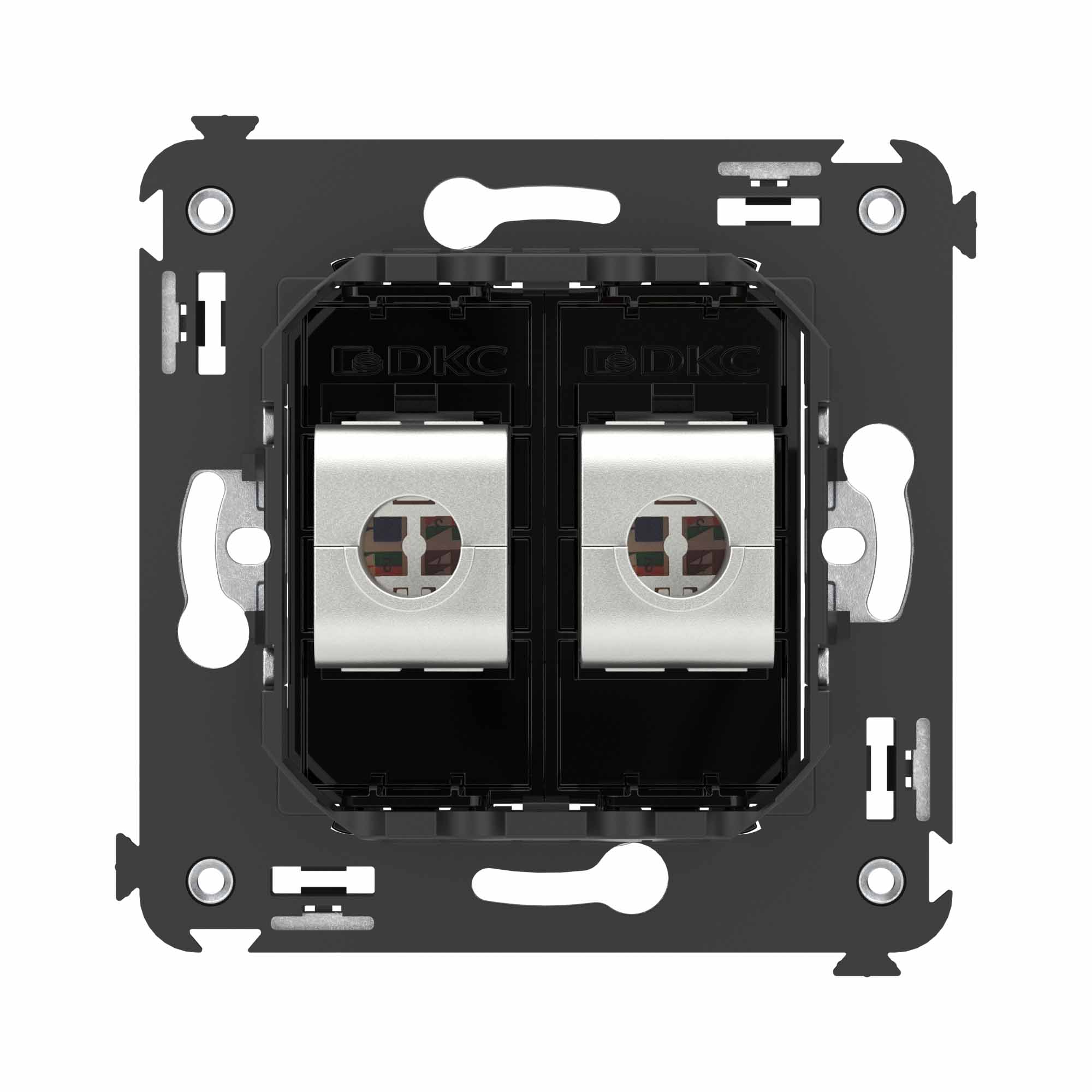 DKC Avanti Компьютерная розетка RJ-45 без шторки в стену, кат.6А двойная экранированная, Черный квадрат от производителя DKC (ДКС). Артикул производителя 4402774.