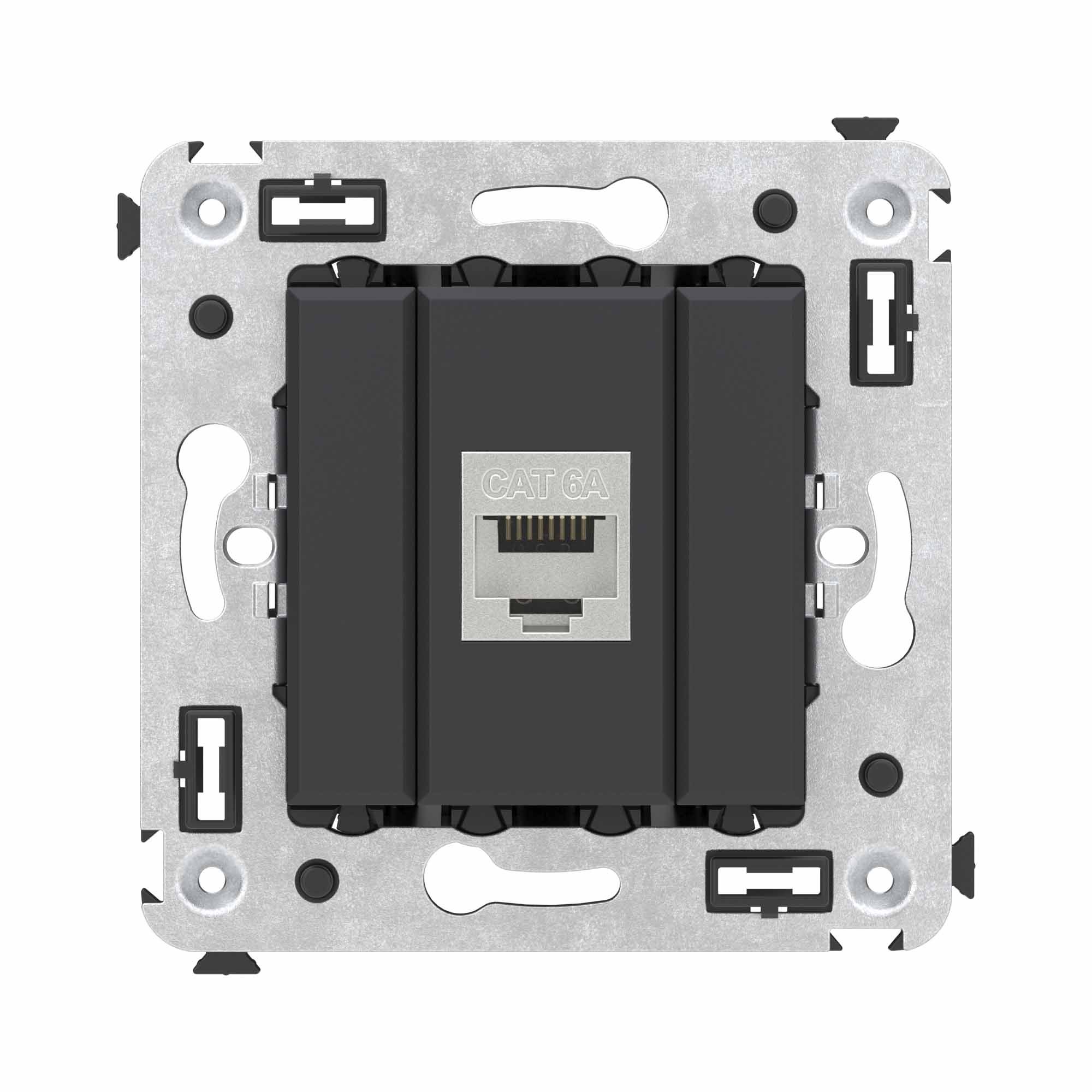 DKC Avanti Компьютерная розетка RJ-45 без шторки в стену, кат.6А одинарная экранированная, Черный матовый от производителя DKC (ДКС). Артикул производителя 4412773.